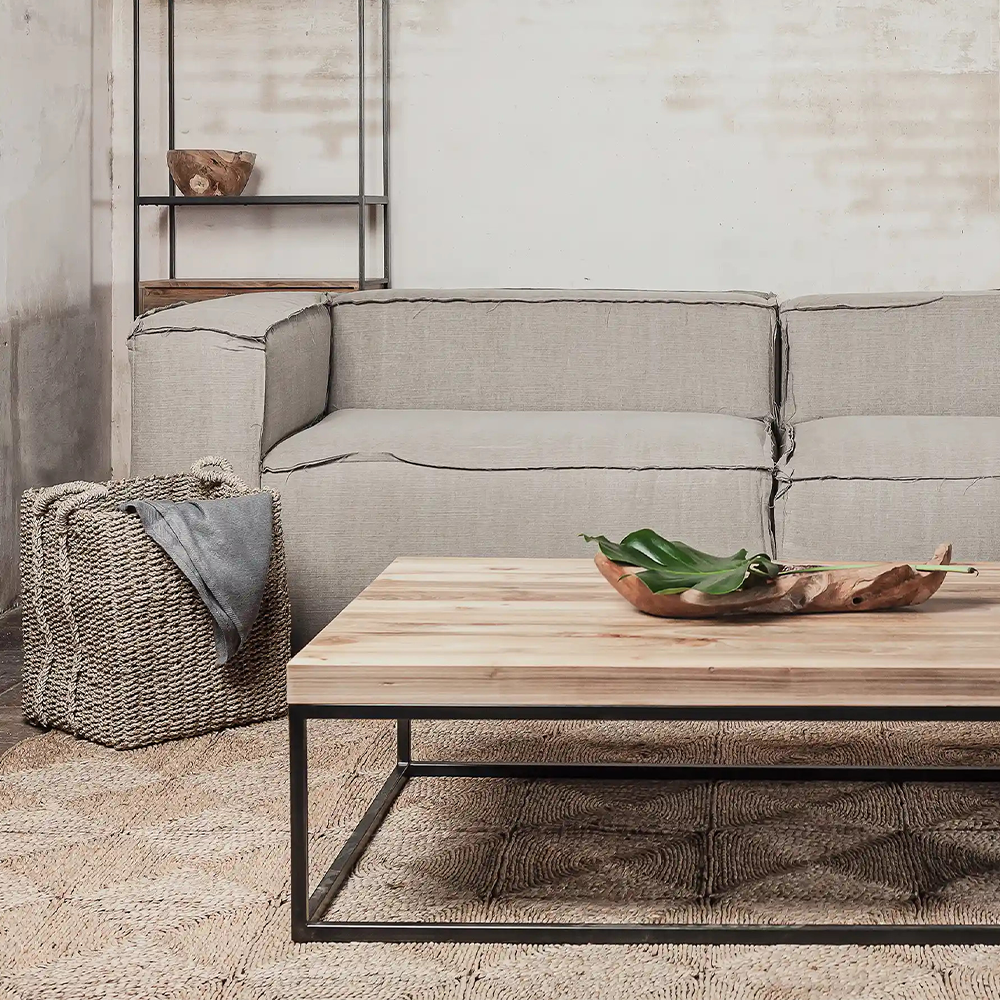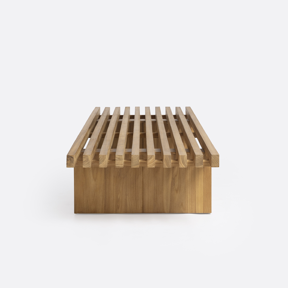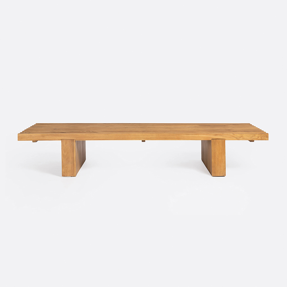 Solid Natural Teak Wood Coffee Table with Contemporary Base – Available in Two Sizes