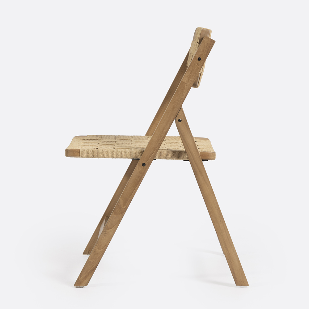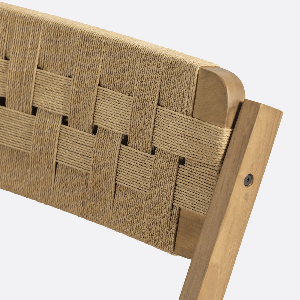 Foldable Solid Natural Teak Wood Dining Chair with Woven Cord Seat and Back