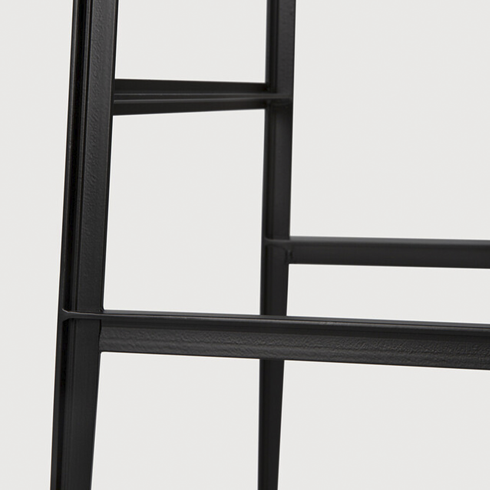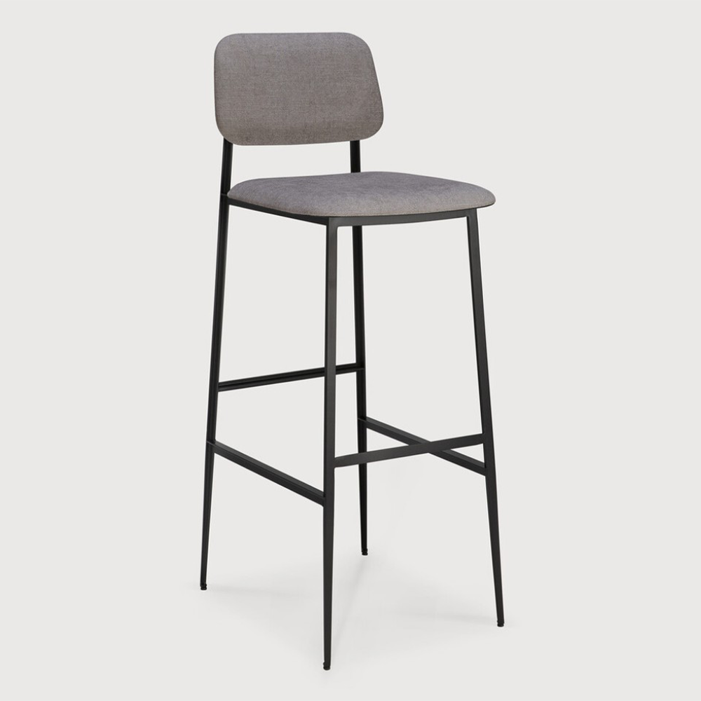 Defined by sleek metal lines and upholstered comfort, this bar stool from this series elegantly combines industrial strength with refined modern design. Its slender black metal frame provides a strong, graphic silhouette, while the light-grey upholstered seat offers a soft contrast and invites relaxation.