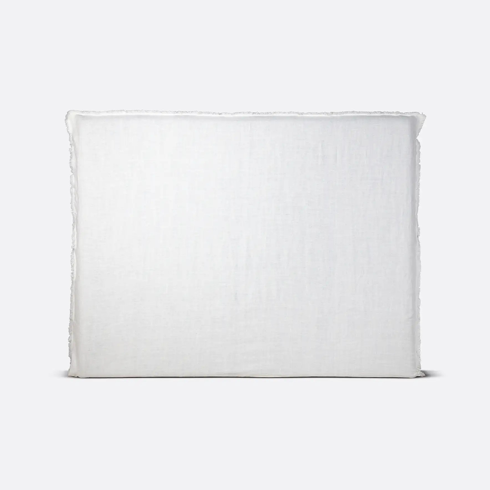 MUNNAR headboard cover, woven on hand looms from 100% natural linen sourced from sustainable crops. Edged with short fringe trim. No fasteners for quick and easy replacement.