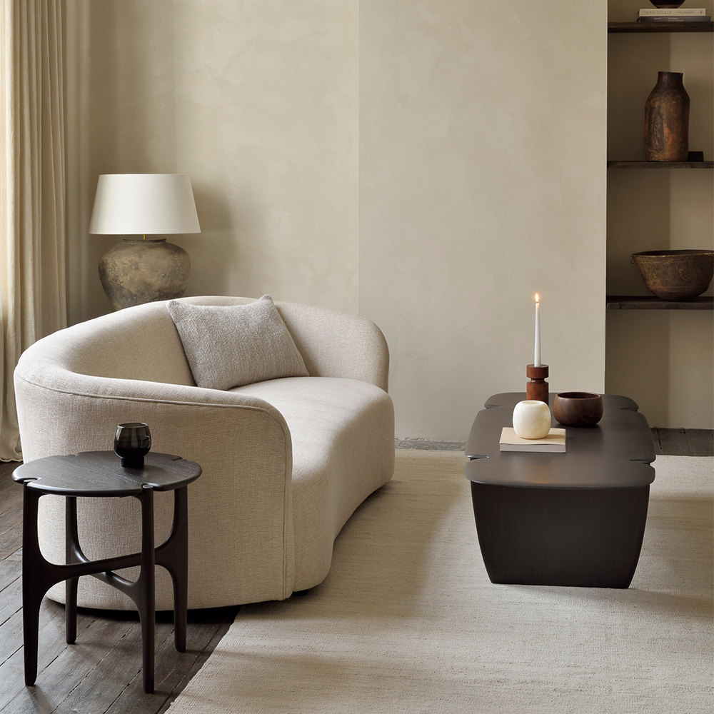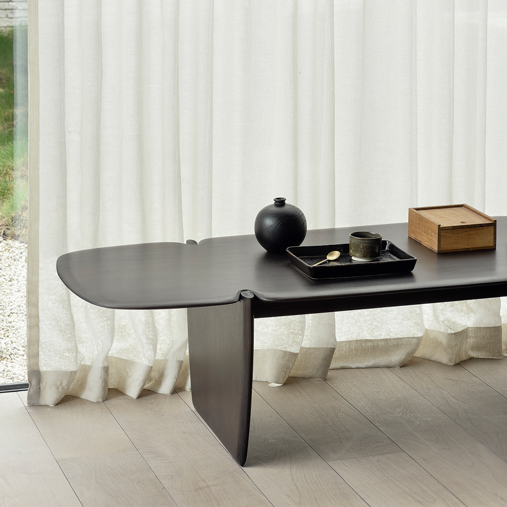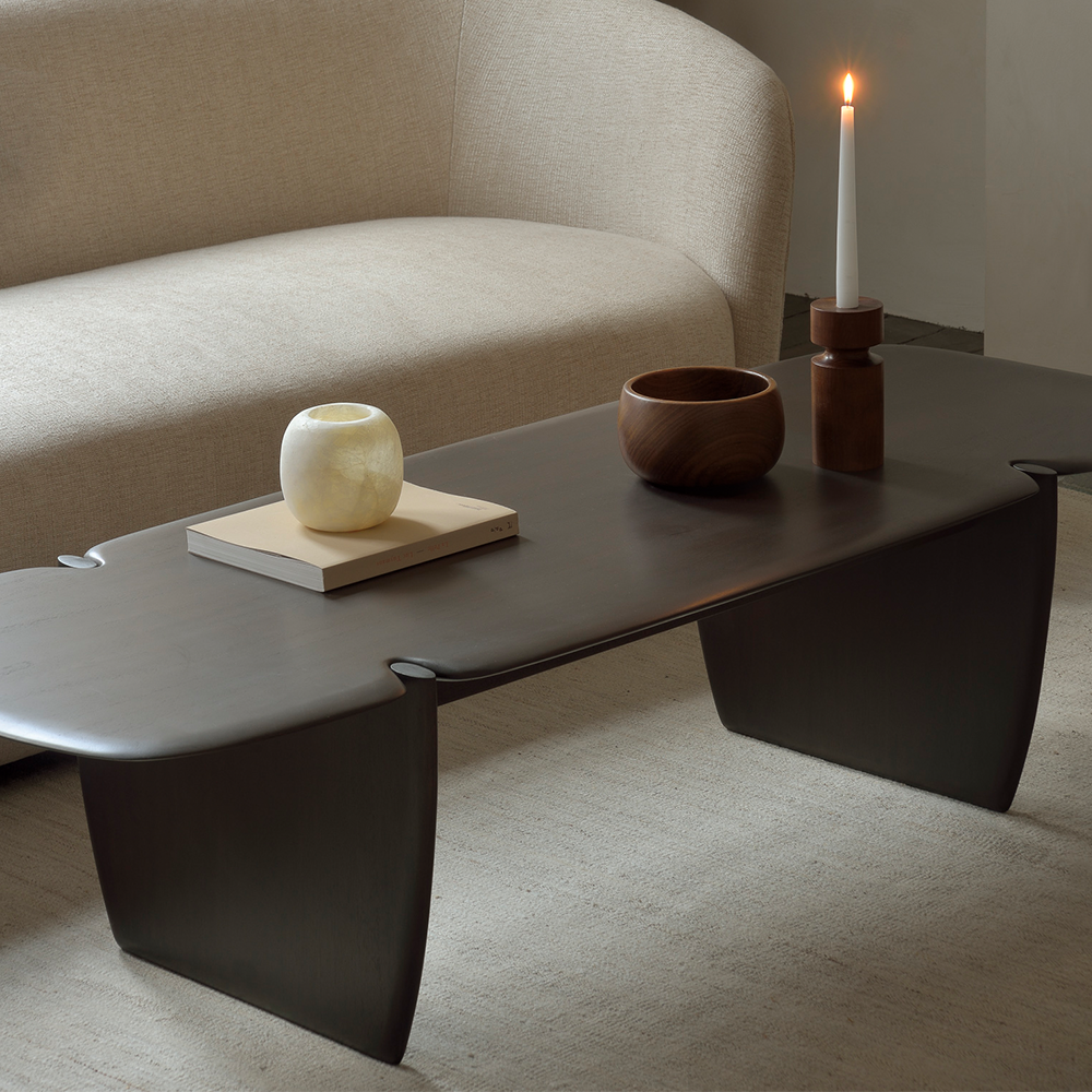 Embracing the natural strength, curves, and lines of the wood, the Rawline Mahogany dark brown coffee table reveals intriguing forms through its sleek yet organically imperfect finish. Each piece is meticulously finished by hand, honoring the unique character inherent in every slab of wood.