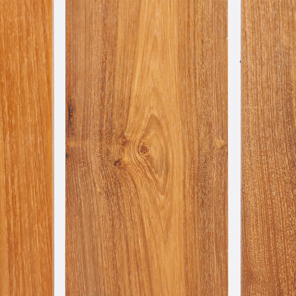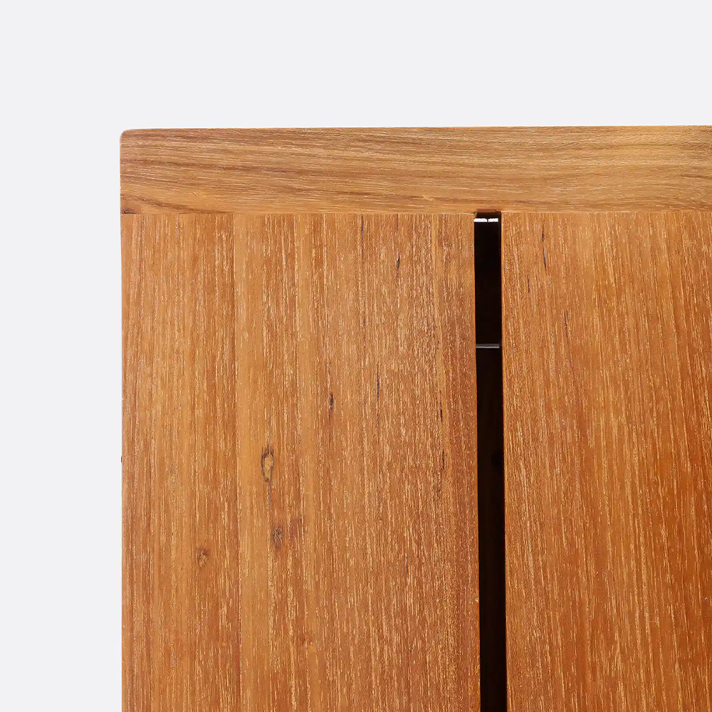 This outdoor coffee table features a plank-top teak surface, allowing rainwater to easily drain and keeping the table fresh and functional. Supported by robust cylindrical legs, it blends durability with a natural, rustic aesthetic. Perfect for patios, gardens, or outdoor lounges, offering timeless elegance and practical design.