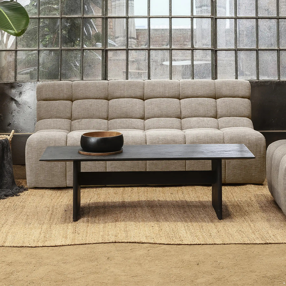 Solid Black Teak Wood Japanese Styled Coffee Table