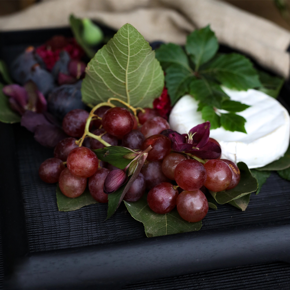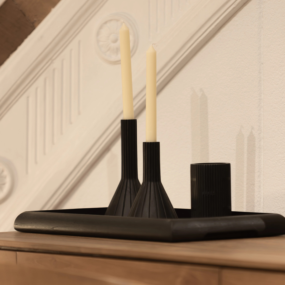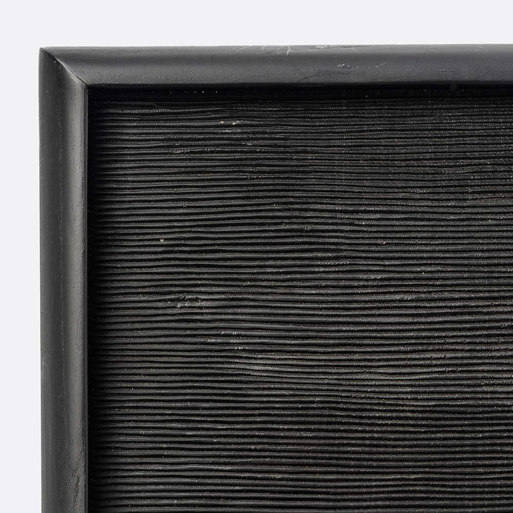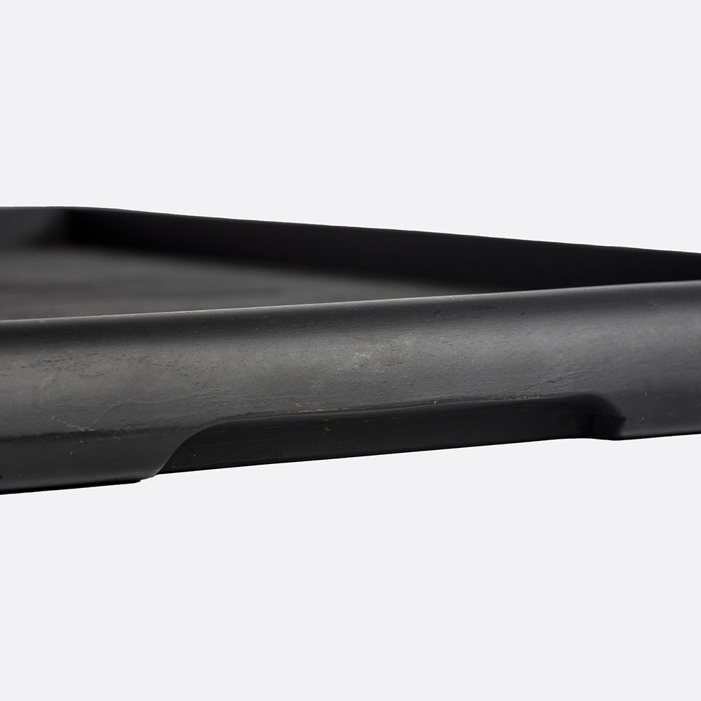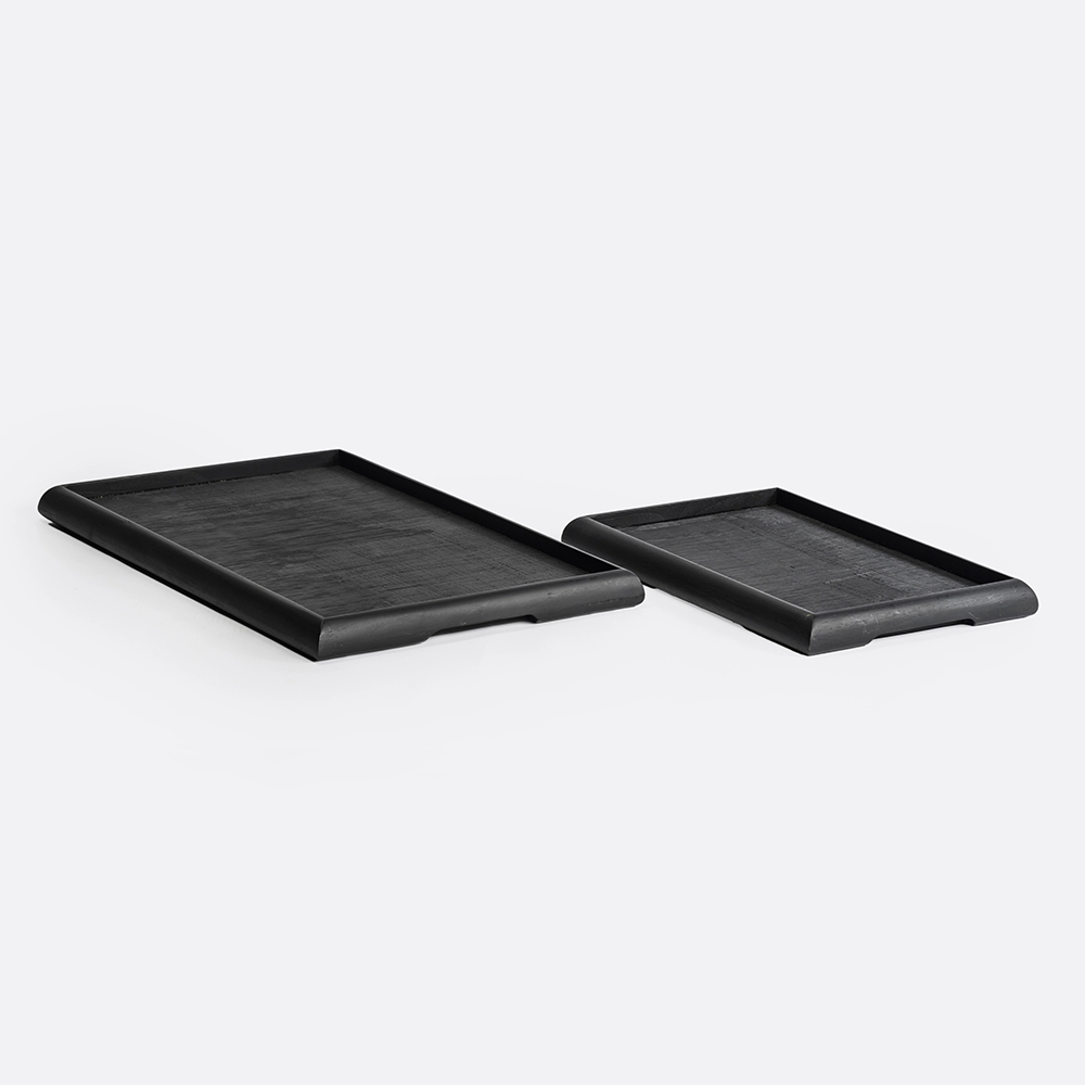 Solid Black Teak Wood Tray with Handcarved Groove Design