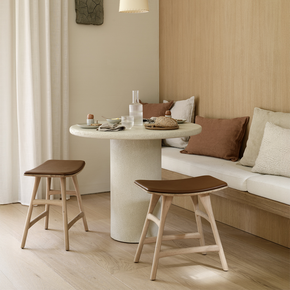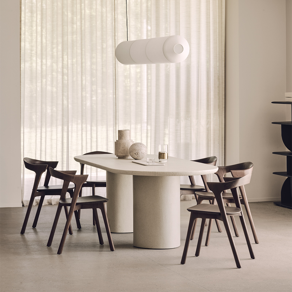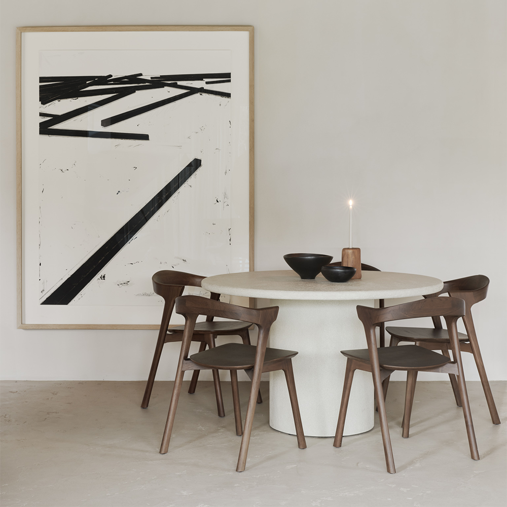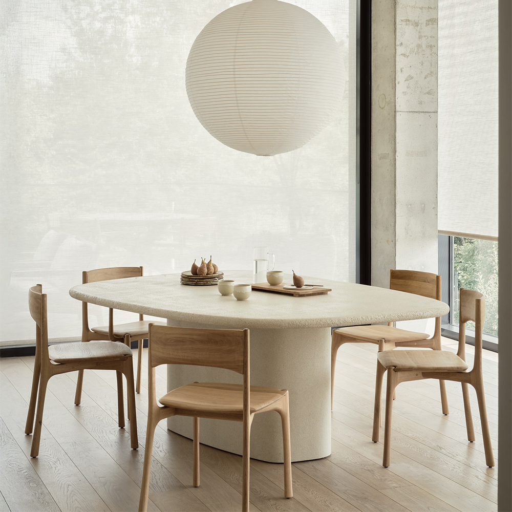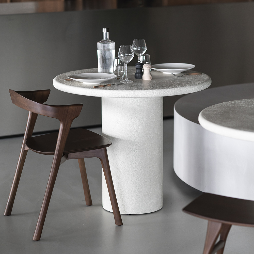 Elegant simplicity forms the basis of this dining table collection. Seamless and softened forms blend perfectly with textural character at the expert hands of artisans. Each piece offers a slightly unique identity with a high-performing, fine, earthy stone finish. Elements make a durable and stylish addition to a variety of spaces.