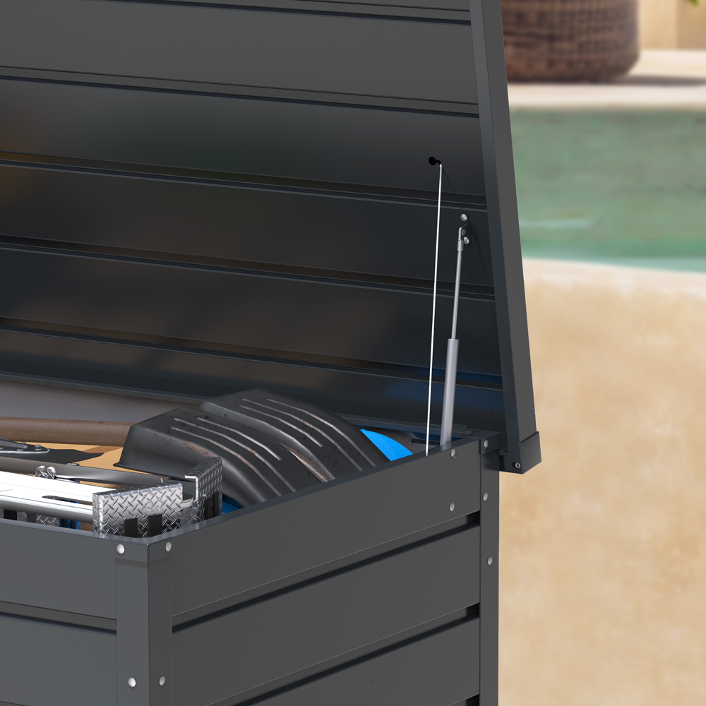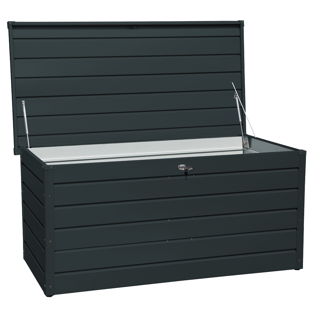 This is our 870L Anthracite Outdoor Storage Box. Also available in different sizes and colours.