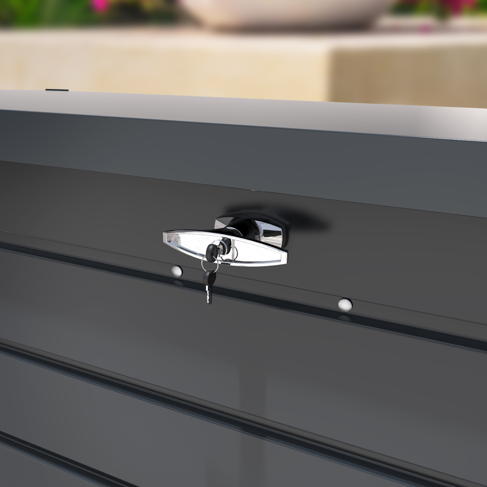 Featuring hydraulic gas supports, lids and doors stay open when needed and all models feature a sturdy key lock for security.