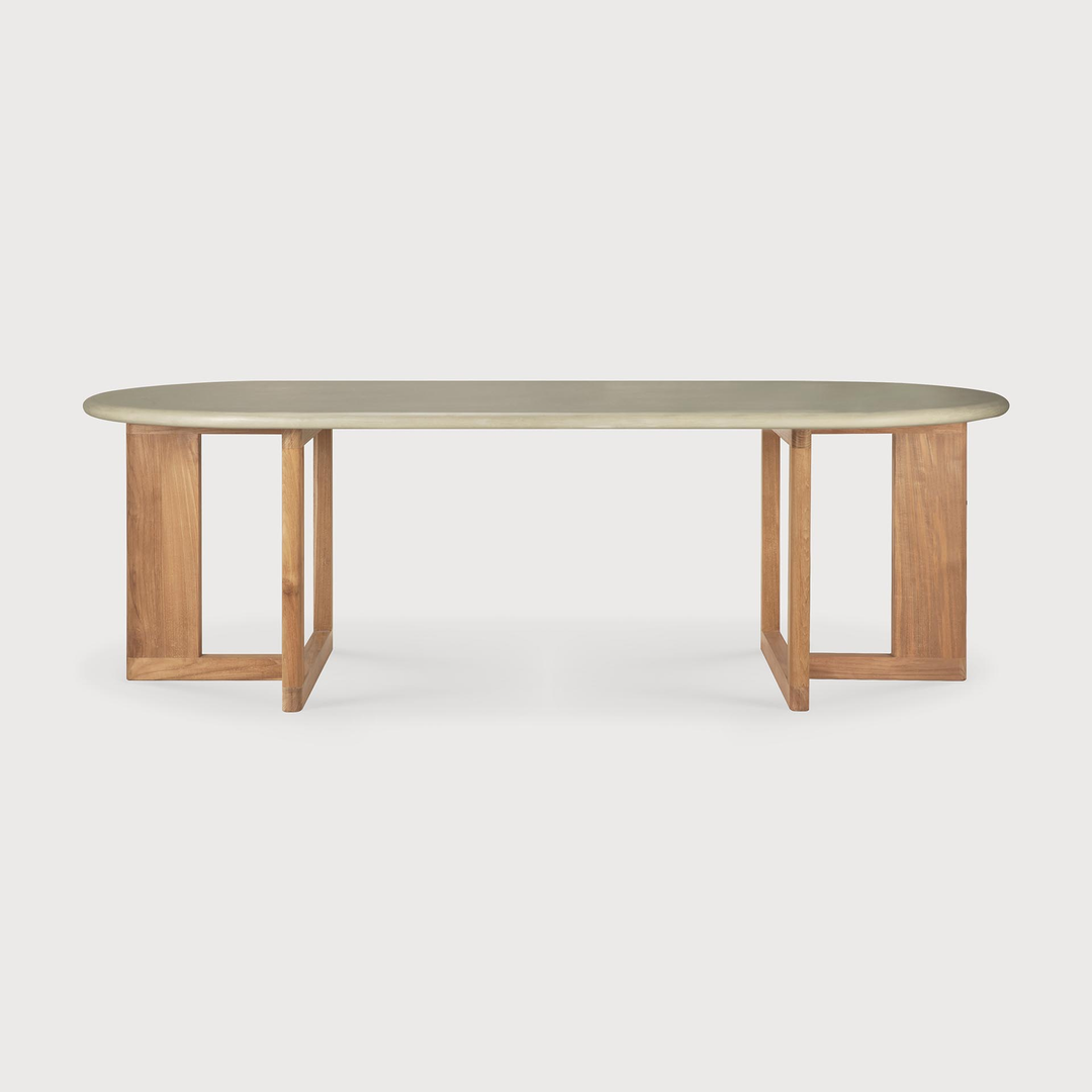 Blending modern sophistication with natural beauty, the Trestle outdoor dining table features a sleek, oblong-shaped concrete top set on a solid reclaimed teak base; both materials known for their strength and resilience against the elements. The wood grain brings warmth and richness, seamlessly working with the concrete to create a harmonious balance. Whether you’re hosting a garden party or a cosy indoor dinner, the Trestle promises to be the centrepiece of your gatherings. With two different configuration options, personalise the leg base to suit your preference.