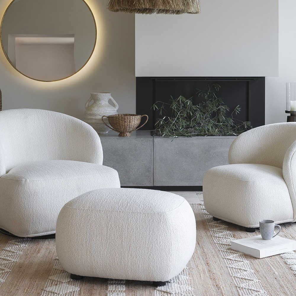 Presents the essential bouclette material on a pouf with contemporary lines in this range. Elegantly enhance any living space thanks to its chic color and modern shape. Its birch legs ensure robustness and stability while being very discreet.