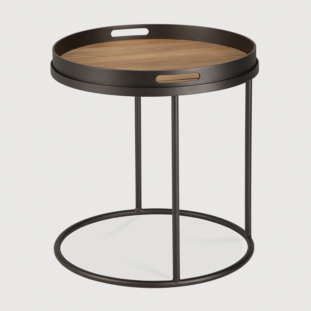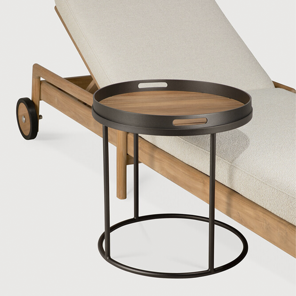 Outdoor tray tables extend versatility into open-air settings. Serving as side or coffee tables, their tops are designed to accommodate our range of indoor or outdoor trays, allowing you to combine functionality with personal expression. Used individually or as a set, they provide adaptable surfaces that enhance outdoor lounging and dining areas.