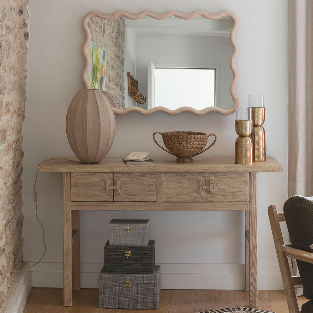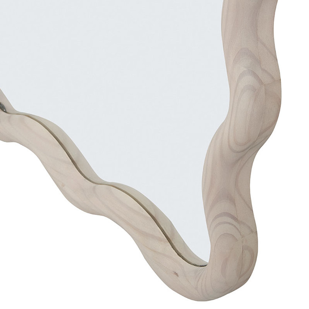 A retro design piece, inspired by the aesthetics of the 70s with its unique and elegant wave shape. Made of bleached pine, this mirror combines modernity and nostalgia to bring a warm and vintage touch to your interior.