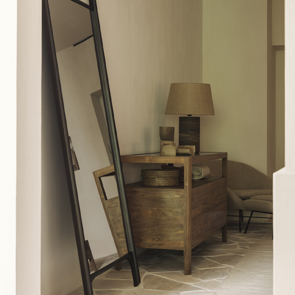 This mirror collection honours nature’s design by keeping the strength, curves and lines, as nature intended. Interesting shapes are discovered in this sleek and stylish, polished imperfect finish. Each item of this floor mirror line is finished by hand to ensure that the individual character of the wood is respected. Designed by Alain van Havre.