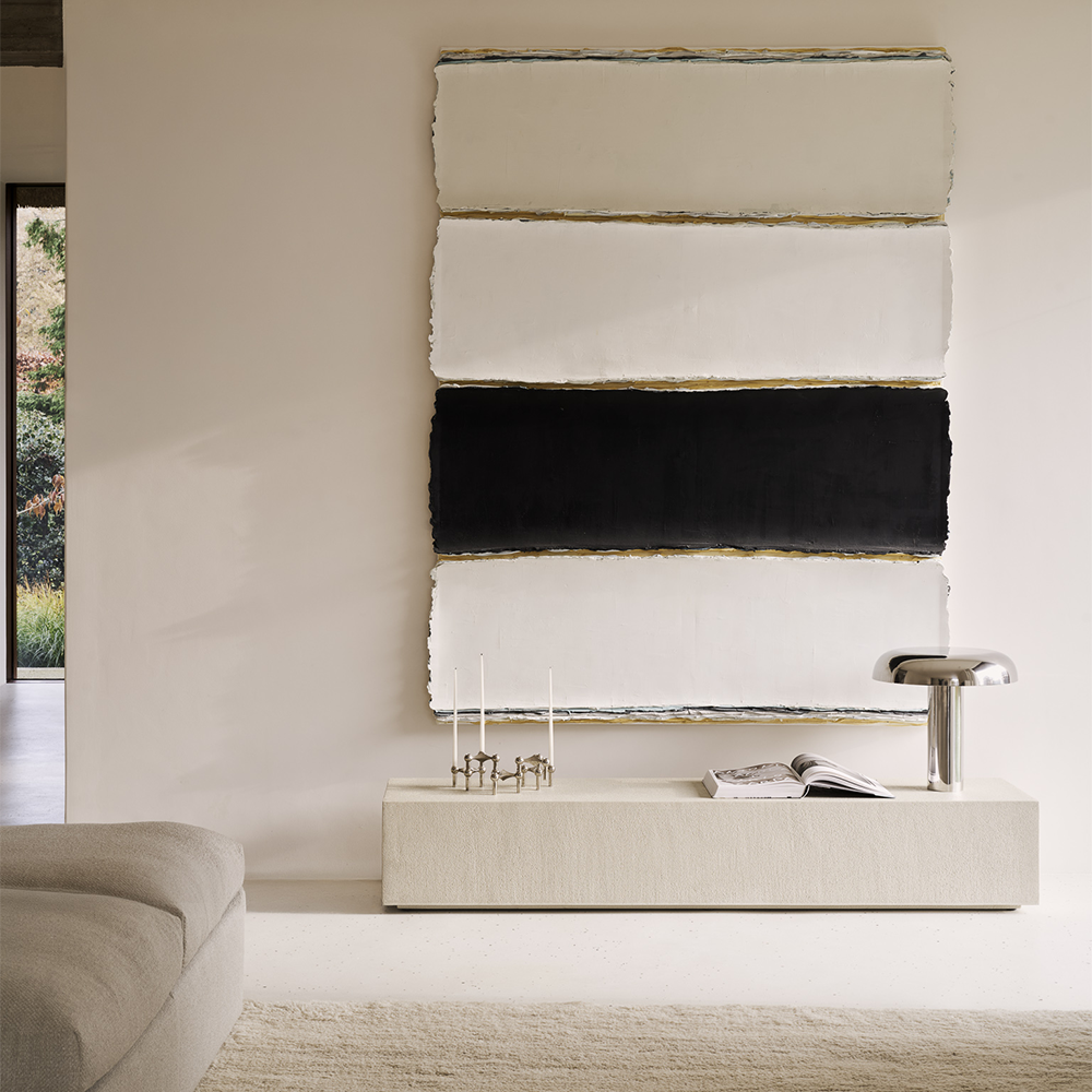 Elegant simplicity forms the basis of this collection. Seamless and softened forms blend perfectly with textural character at the expert hands of artisans. Each piece offers a slightly unique identity with a high-performing, fine, earthy stone finish. This floor shelf makes a durable and stylish addition to a variety of spaces.