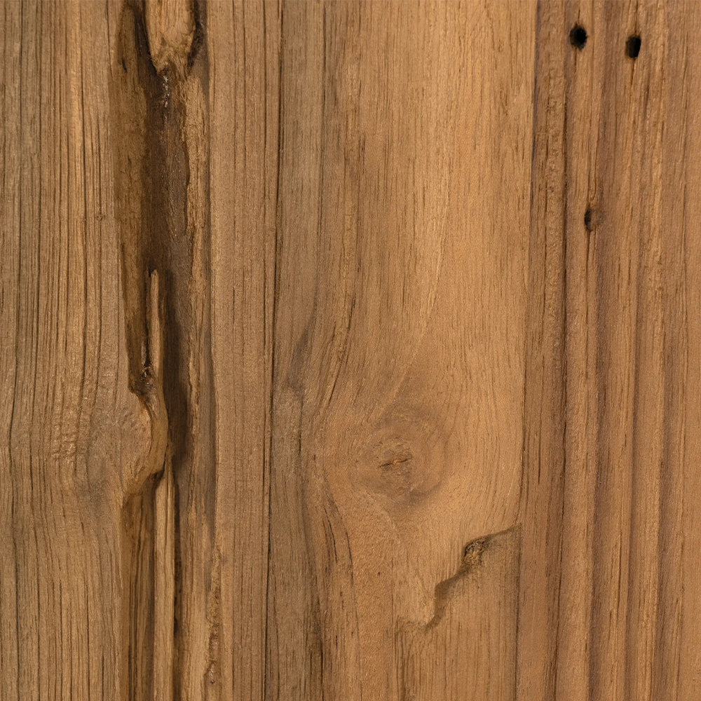 The use of recycled teak, which retains the textures and imperfections left by time and the elements, makes EROSI one of our most iconic collections. Each piece has a minimalist design that brings out the natural beauty of the weathered wood. The sturdy structures and simple lines provide a timeless and versatile aesthetic that adapts to all types of spaces and decorating styles. The collection is available in natural and black burned finishes, offering options that enhance the uniqueness of each piece of furniture.