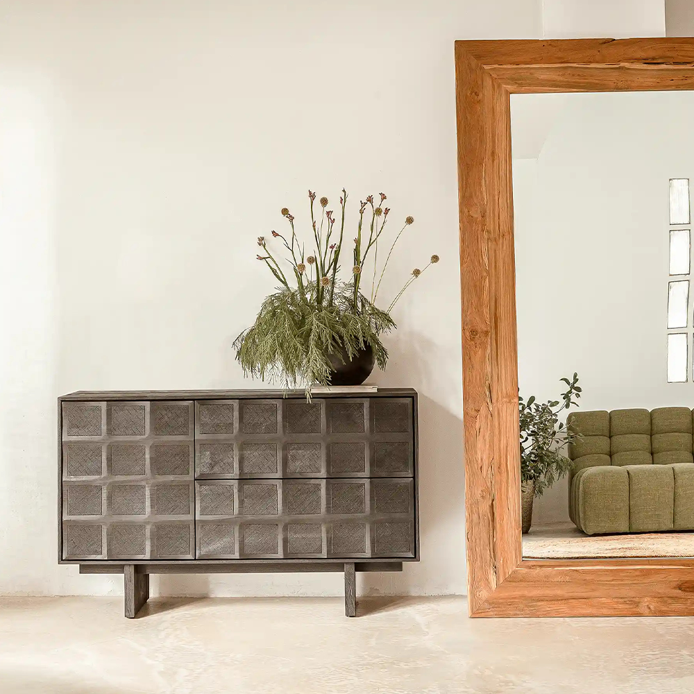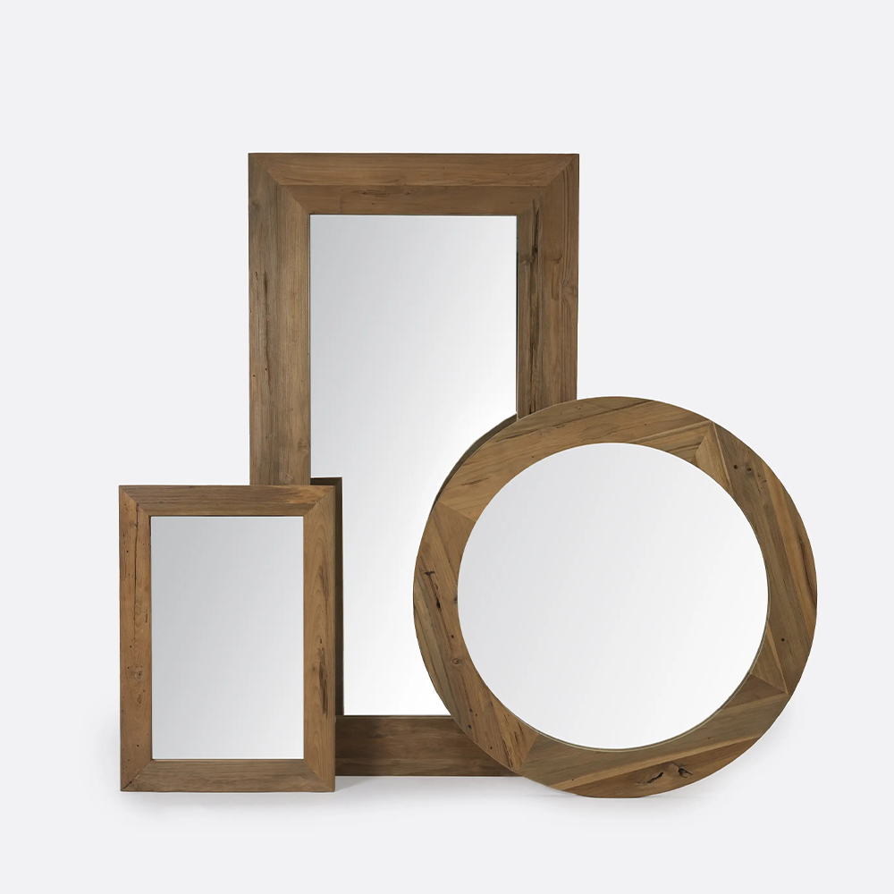 Naturally Eroded Solid Teak Wood Floor Mirror