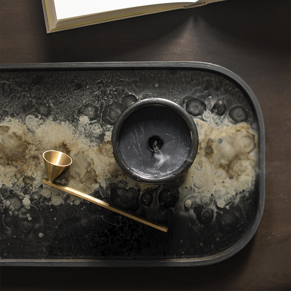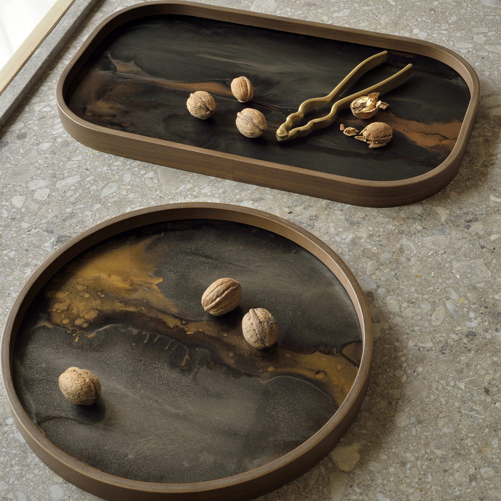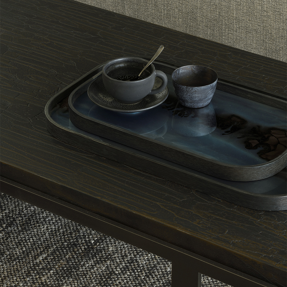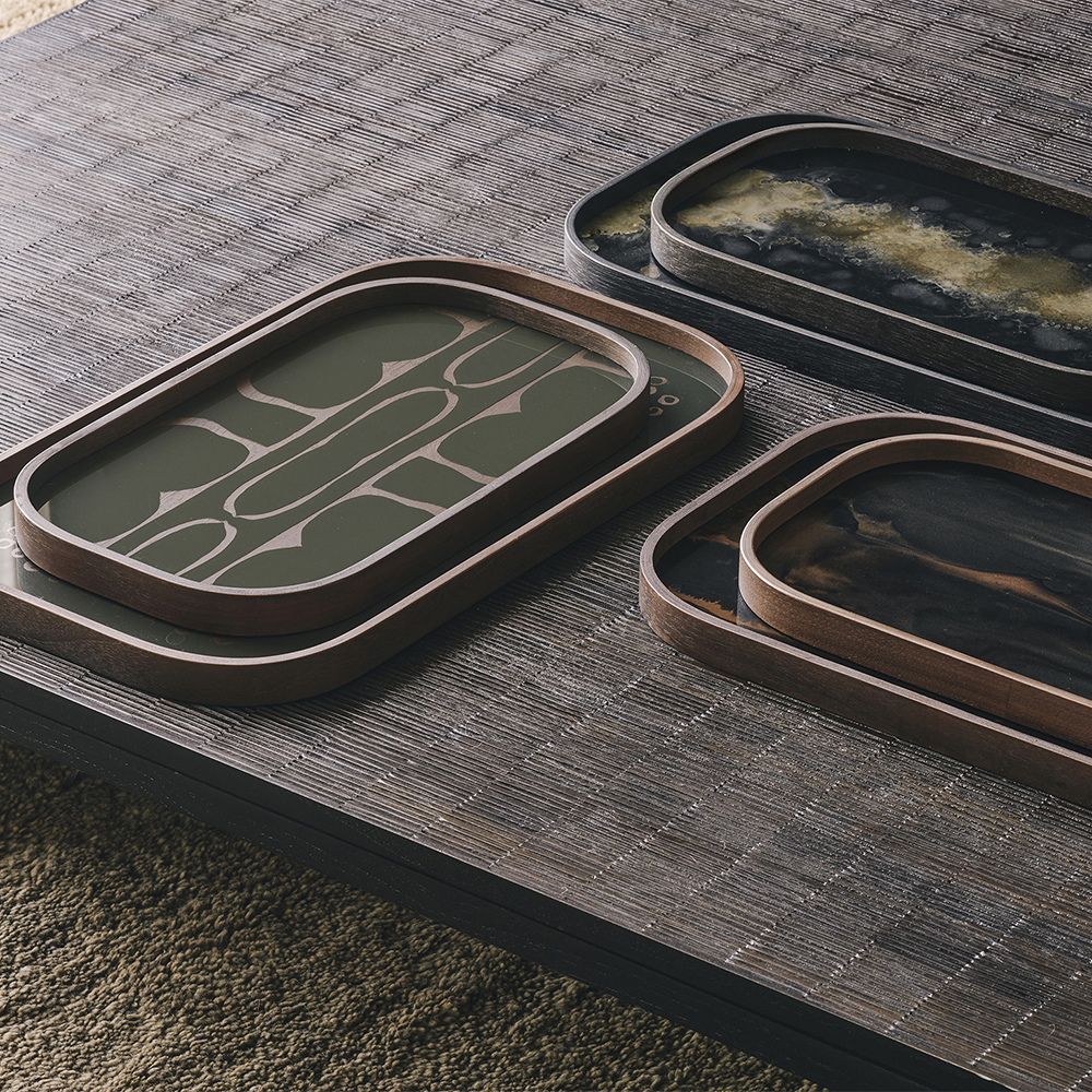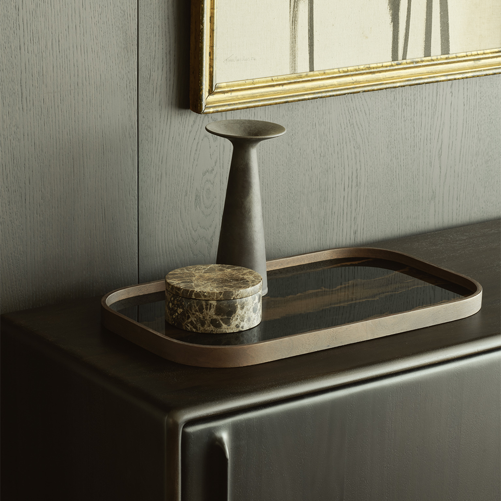 A subdued color palette meets captivating motifs inspired by nature and travel. This Organic glass valet tray experiments with the balance between rich patterns offset with muted tones, revealing the beauty behind the deceivingly ordinary subjects from which inspiration is drawn. In doing so, this collection captures the essence of timelessness.