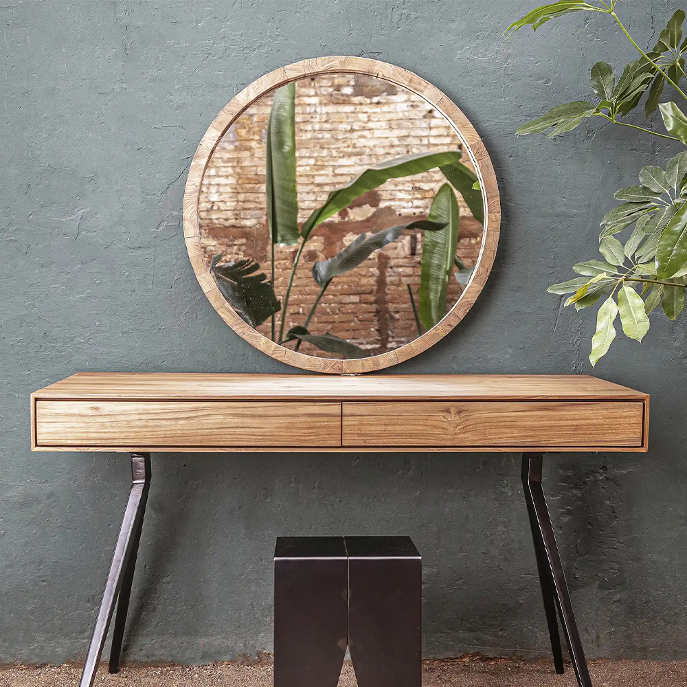 ESFERIC is a collection of minimalist design pieces made from recycled teak wood from old disused buildings in Indonesia. The round mirrors are hand brushed and have a natural texture and rustic finish that adds warmth and authenticity to any space. Perfect for entrance halls, dressing tables or any environment that requires a touch of simple and sustainable elegance.