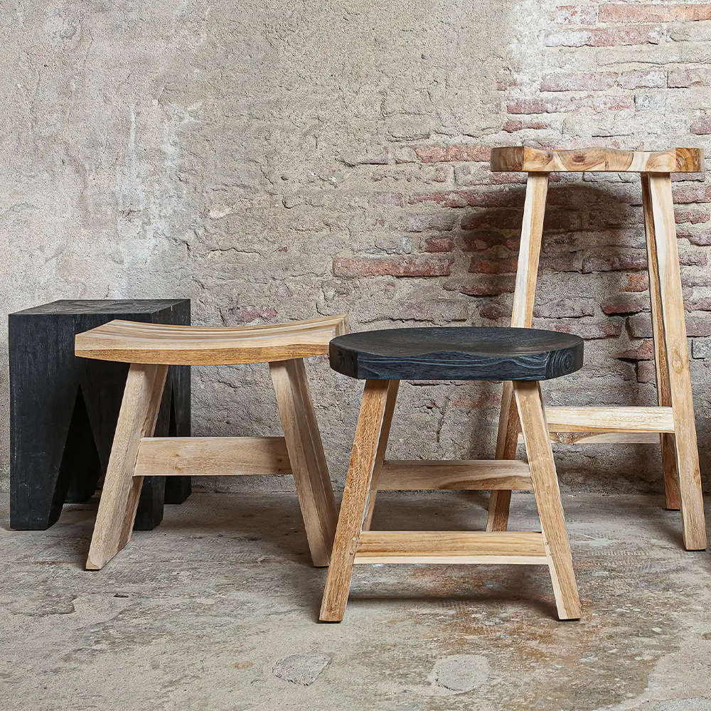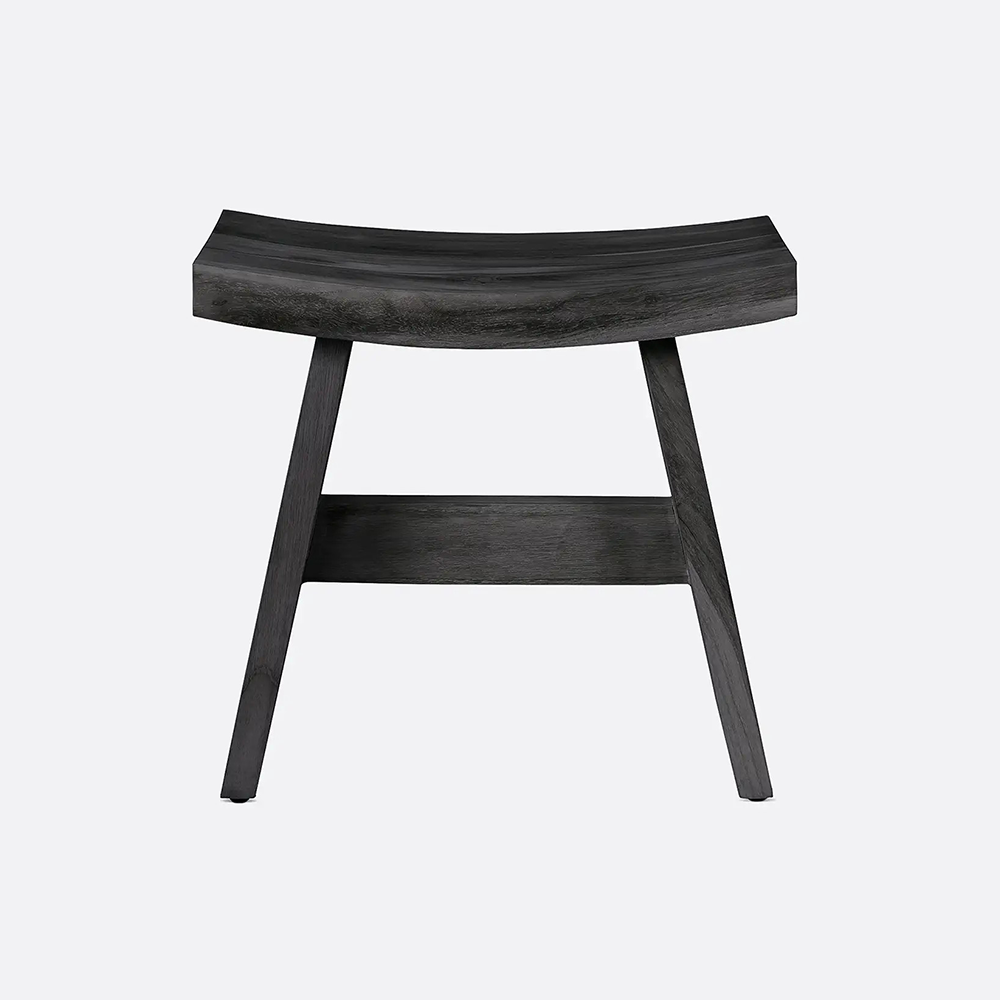 Sculpted Solid Teak Wood Stool – Available in Natural and Brushed Black Teak Wood
