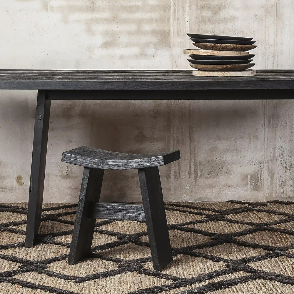 The U stool embodies the essence and simplicity of Japanese minimalism. Its design eliminates superfluous elements to focus on clean lines and simple forms that blend harmoniously with their surroundings. Four solid pieces of sustainably sourced teak are handcrafted with great attention to detail to maintain their beauty and quality over time. The slightly curved seat not only enhances comfort but also adds dynamism to the piece, creating a balance between functionality and aesthetics. Available in two finishes: natural and black.