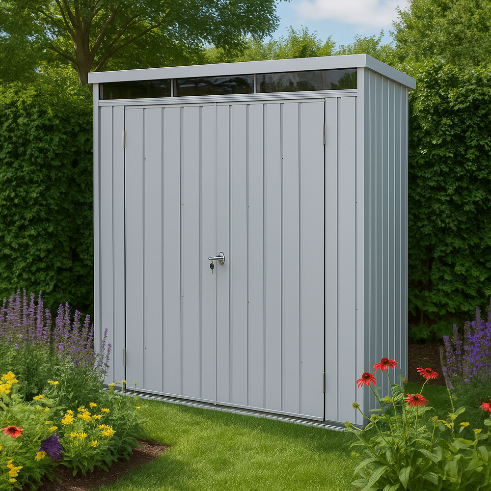 This is our 1240L Double Door Tall Silver Outdoor Storage Cupboard. Also available in different sizes and colours.