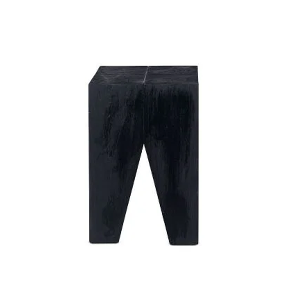 The TRIANGLE collection is expressed through geometric purity and the solidity of sustainable teak wood. The TRIANGLE stool is an example of precise craftsmanship and refined structural design. Composed of four solid blocks seamlessly joined together, its base narrows to form angular legs that provide stability and a sculptural character. The upper surface reveals the wood’s natural grain and growth rings, adding an organic and unique detail to each piece. Beyond its function as a seat, its versatile design makes it a perfect option as a side table, bedside table, or pedestal to showcase decorative elements. A piece that merges strength and simplicity in a single statement.
