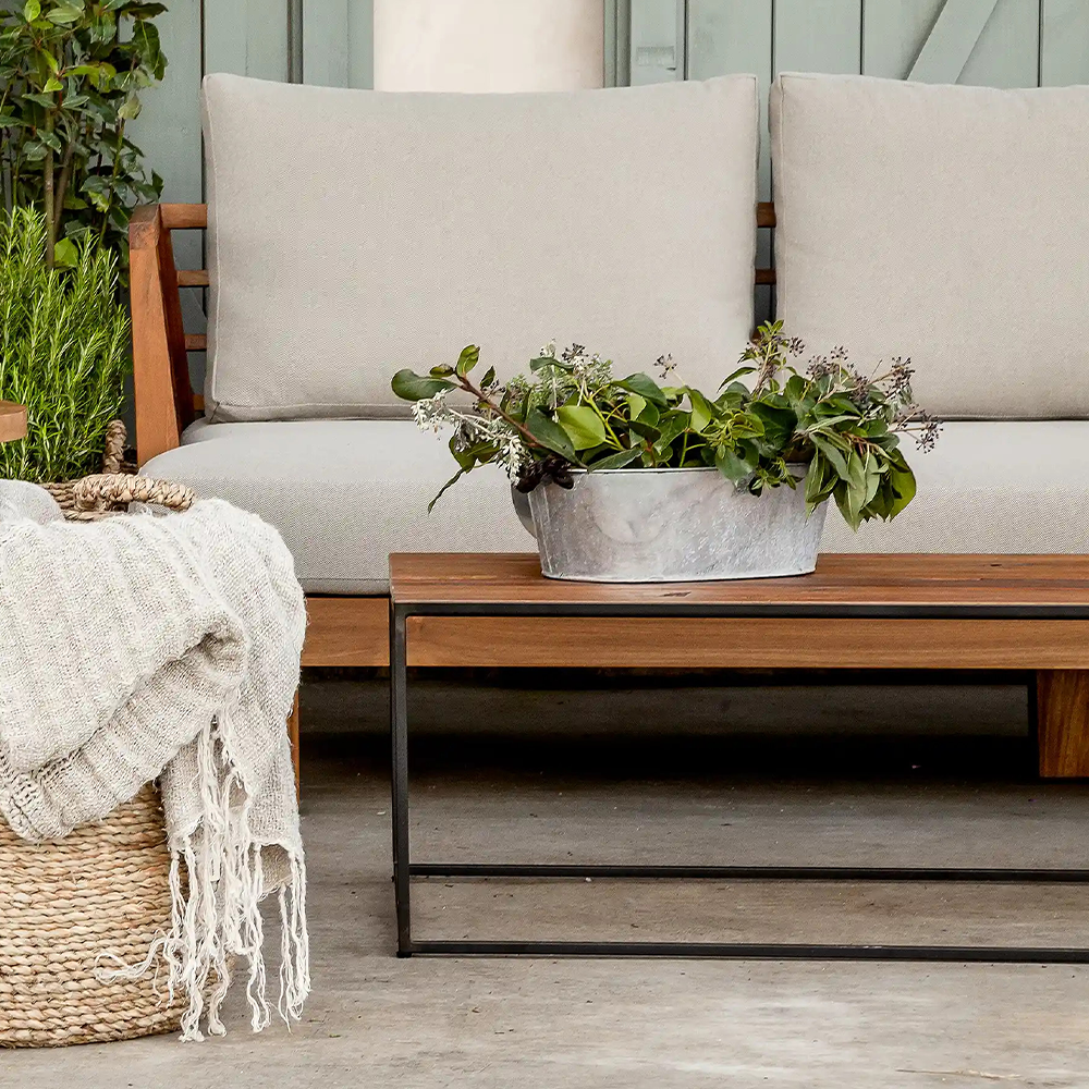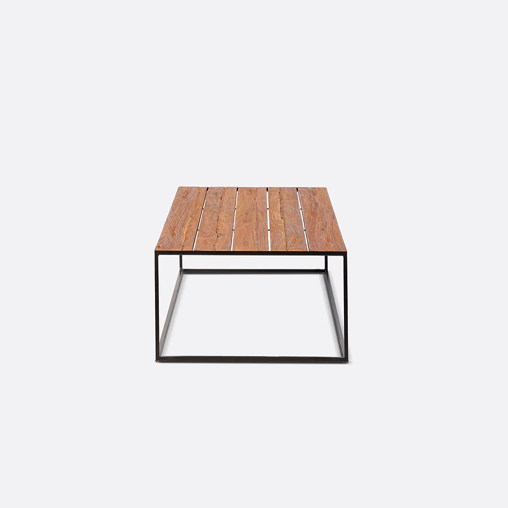 Crafted with a mix of reclaimed teak wood and sturdy iron legs, this outdoor coffee table blends rugged industrial character with eco-conscious style. The textured tabletop tells a story of nature, while the iron base adds strength and contrast. Perfect for patios or outdoor lounges, it complements gatherings with its strong presence and sustainable craftsmanship.