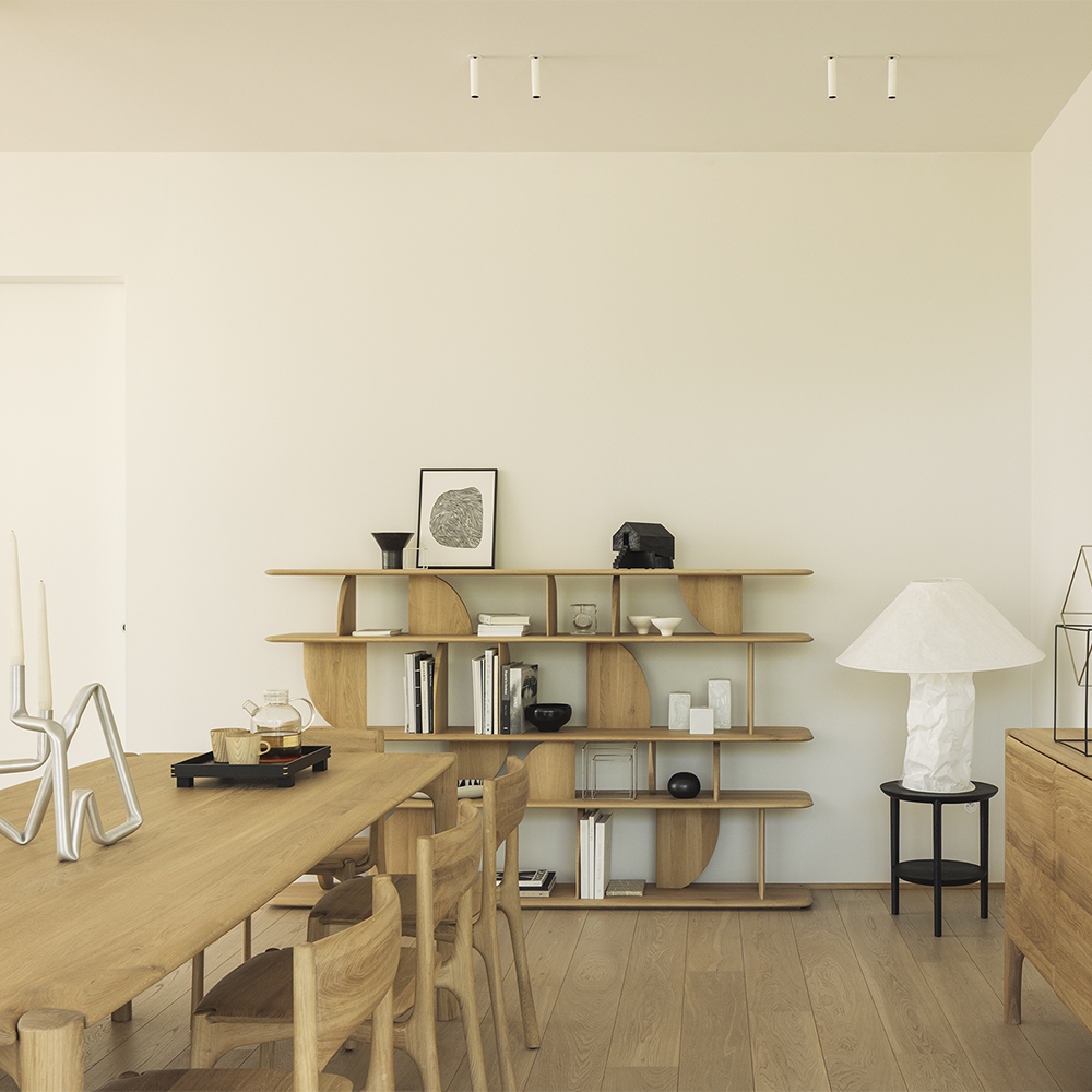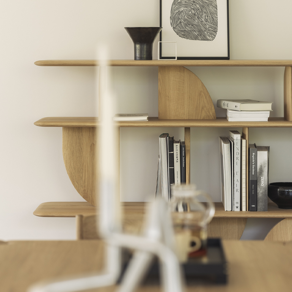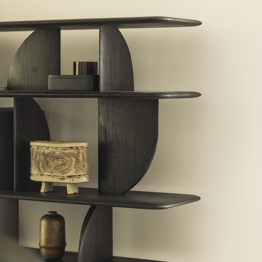 In this collection, shapes intersect in unexpected ways, creating playful contrasts with light and shadow at every angle. This rack offers an eyecatching display for treasured objects and mementos.