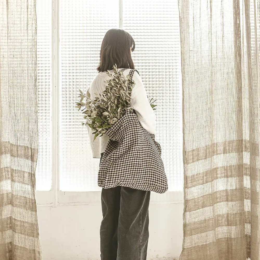 Tote bags with single large compartment without zip. Loose double handle for carrying over the shoulder or as a handbag. Handmade from 100% stonewashed linen.