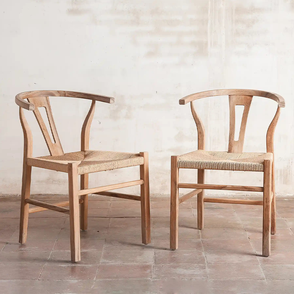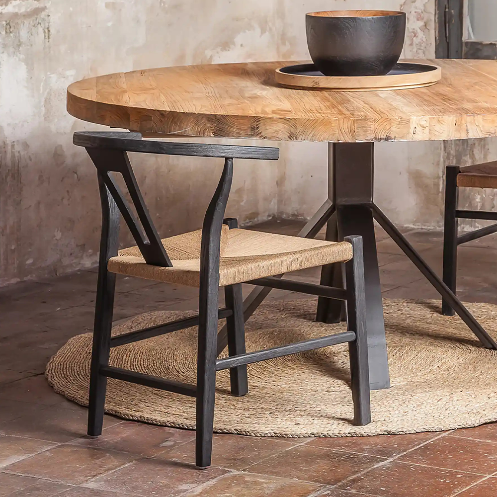 Timeless Design Solid Teak Wood and Cord Dining Chair – Available in Natural and Brushed Black Teak Wood