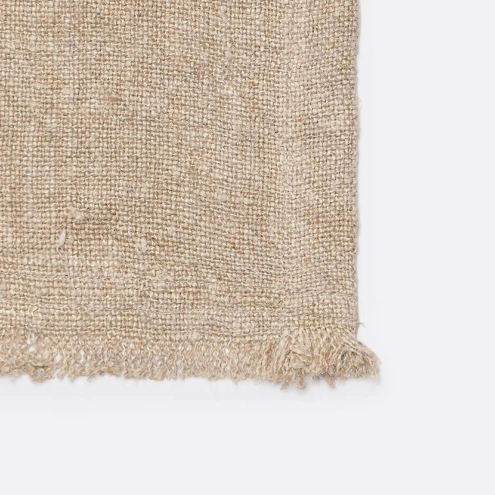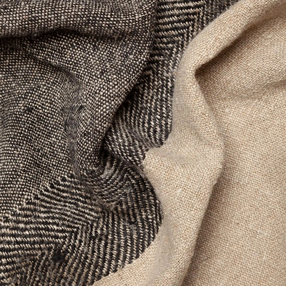 DADDAL plaid, handmade from 100% natural linen. It features a two-tone design, with one side woven in black linen and a perimeter stripe in a natural herringbone pattern. Combinable with the various cushions in the same family.