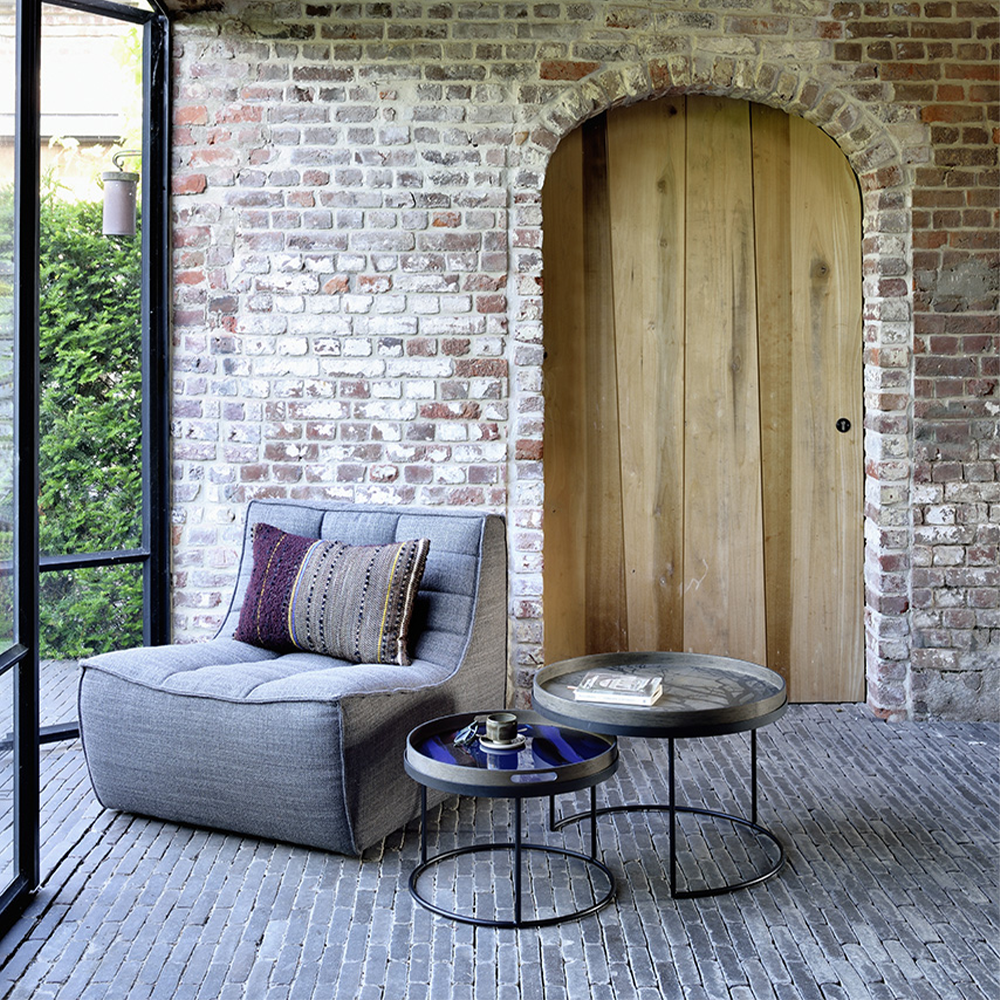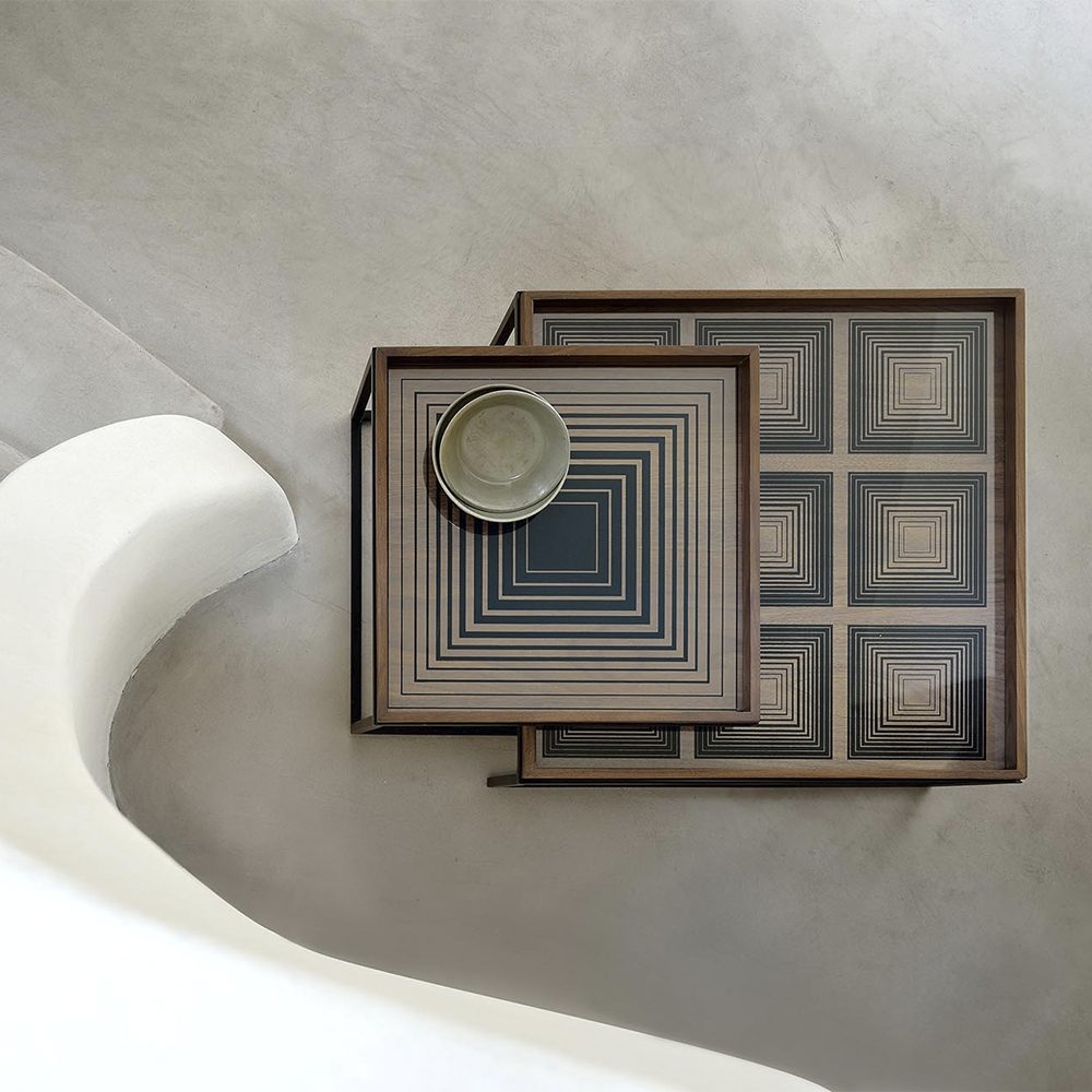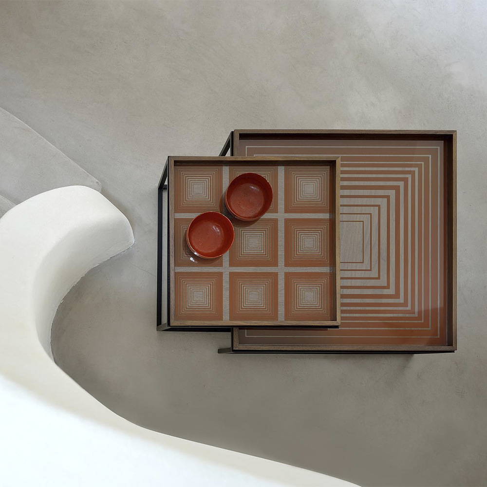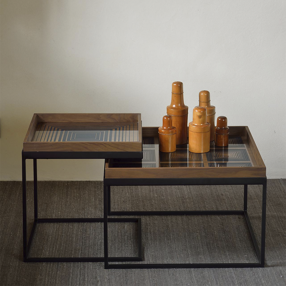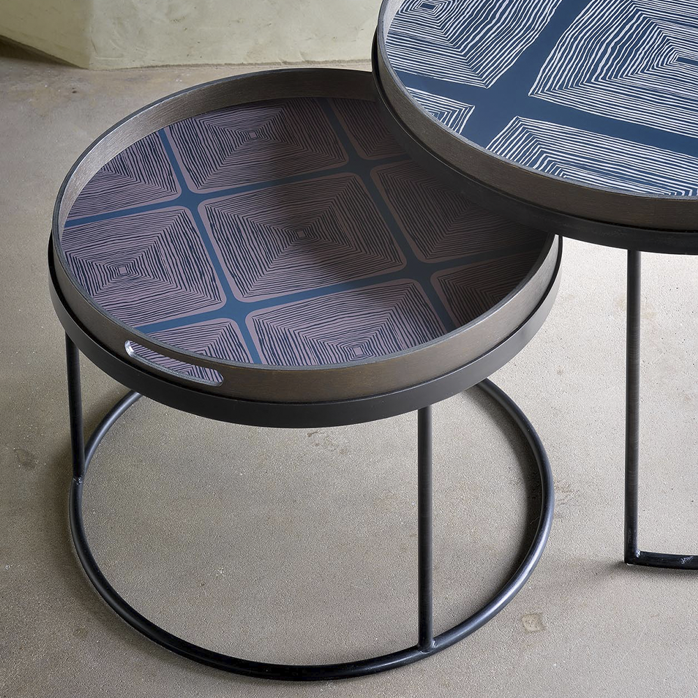 The round tray table is one of our most versatile pieces: while it serves its function as a coffee table, its ability to adopt different trays allows you to mix or match various colors and patterns, creating a personal piece that is uniquely yours. And of course, a set equals twice the fun and creativity.