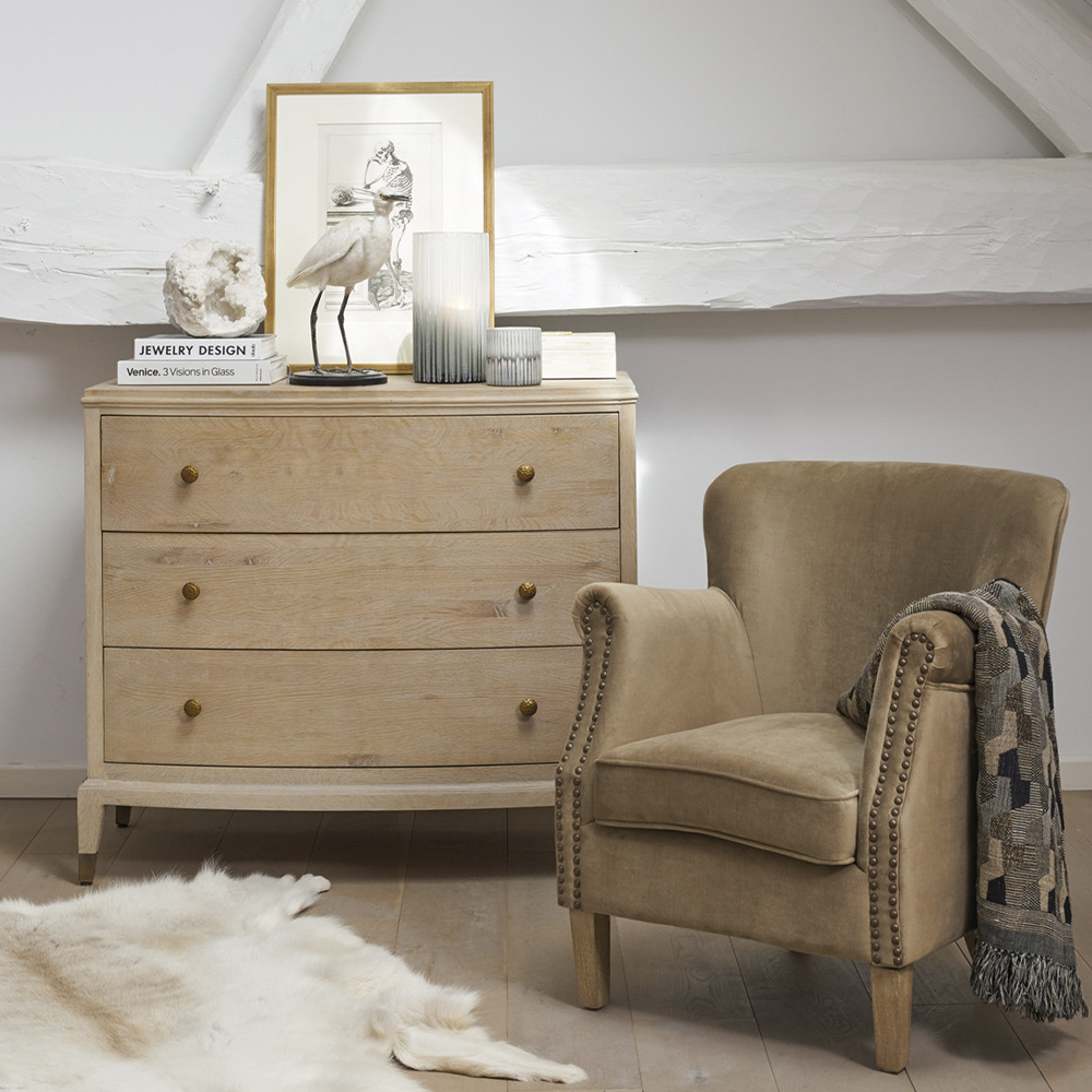 Treat yourself to a moment of relaxation in the Claude armchair in cinnamon velvet, a timeless piece that will blend with any interior style. Its generous seat and large armrests make it a very comfortable seat.