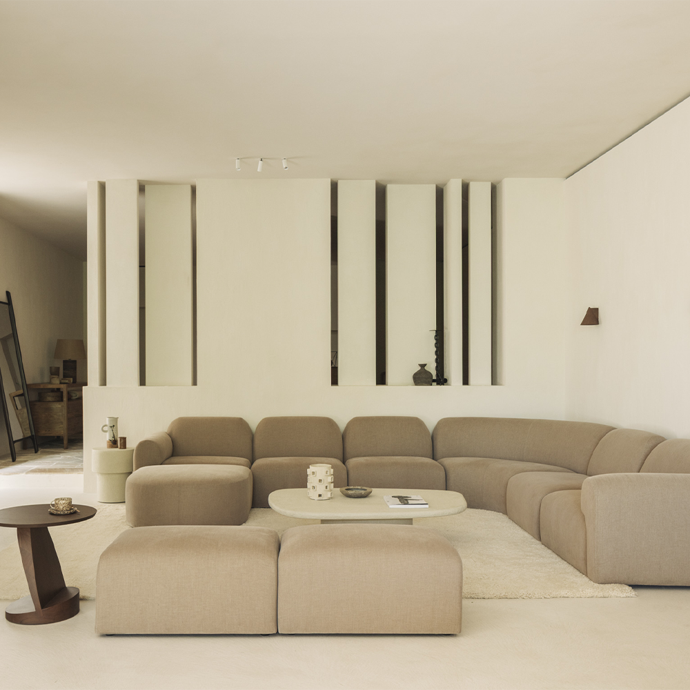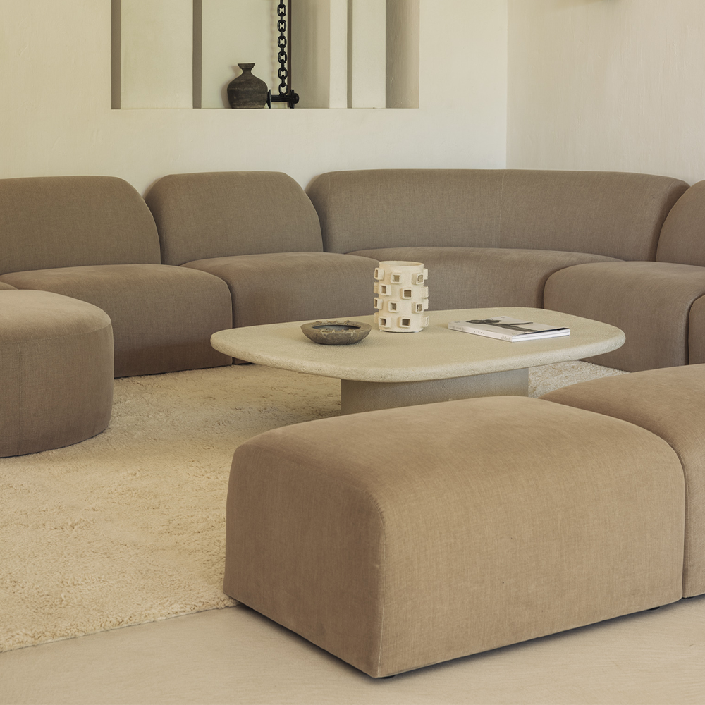 Defined by its generous proportions and sculptural silhouette, this modular sofa set redefines relaxed luxury. Each element is designed to be combined seamlessly, creating a layout that adapts effortlessly to your space and lifestyle. Wrapped in a refined textured fabric, its deep seats and soft, cloud-like cushions invite long moments of repose. Built on a robust wooden structure with high-resilience foam, it balances durability with indulgent comfort.