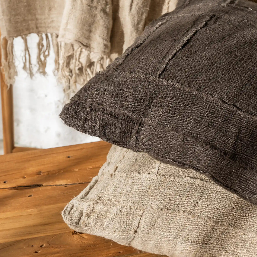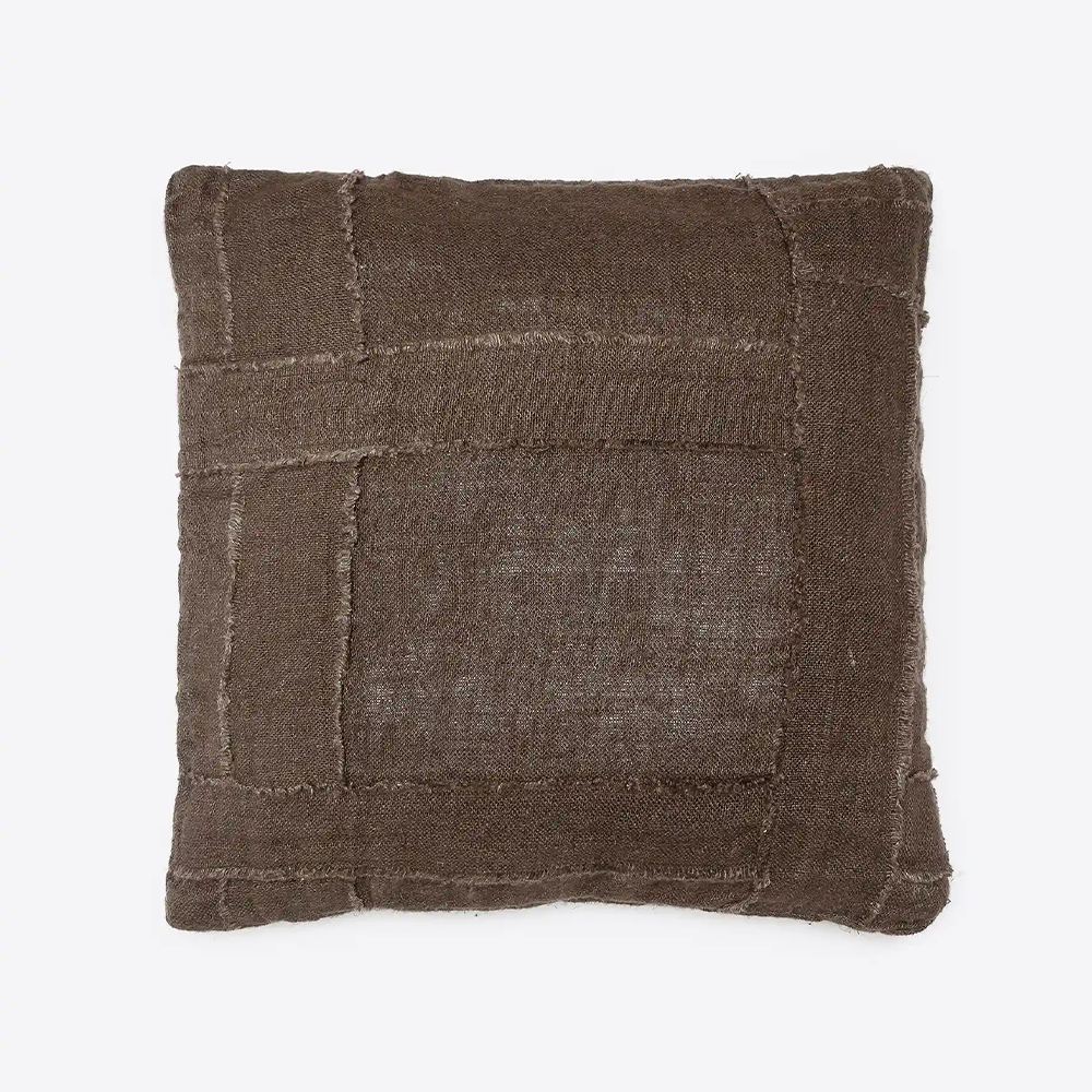 WARORA cushion cover, handmade in 100% stonewashed linen with a patchwork stripe design. Filling not included. Compatible with 50 x 50 cm fillings.