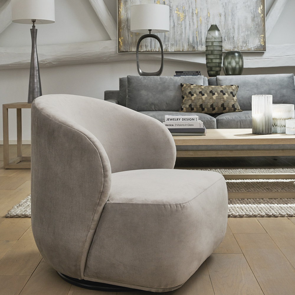 The Lisette armchair has many surprises in store for you. Its elegant rounded shapes hide a swivel base that will allow you to easily orient it, with a simple movement.
