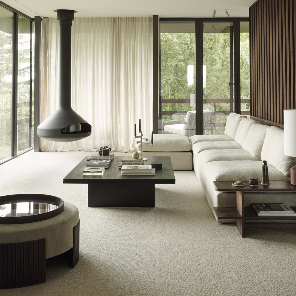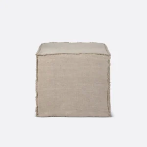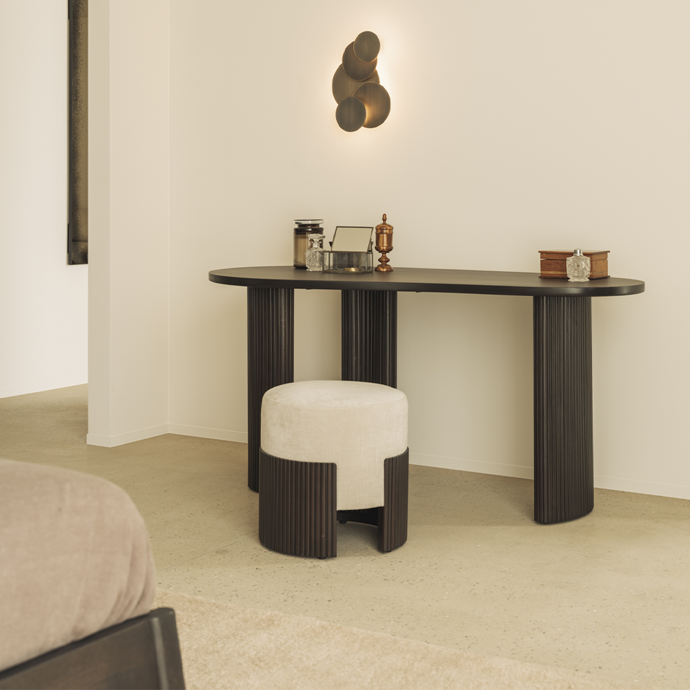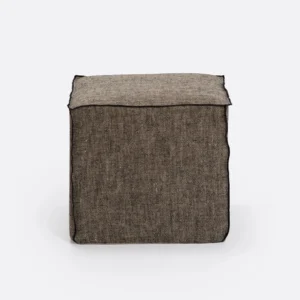 This pouffe collection is remarkable in its design, distinguished with its stacked wood-stick effect. A multifunctional item which encapsulates the comfortable upholstery cushion within the dark brown-varnished mahogany.