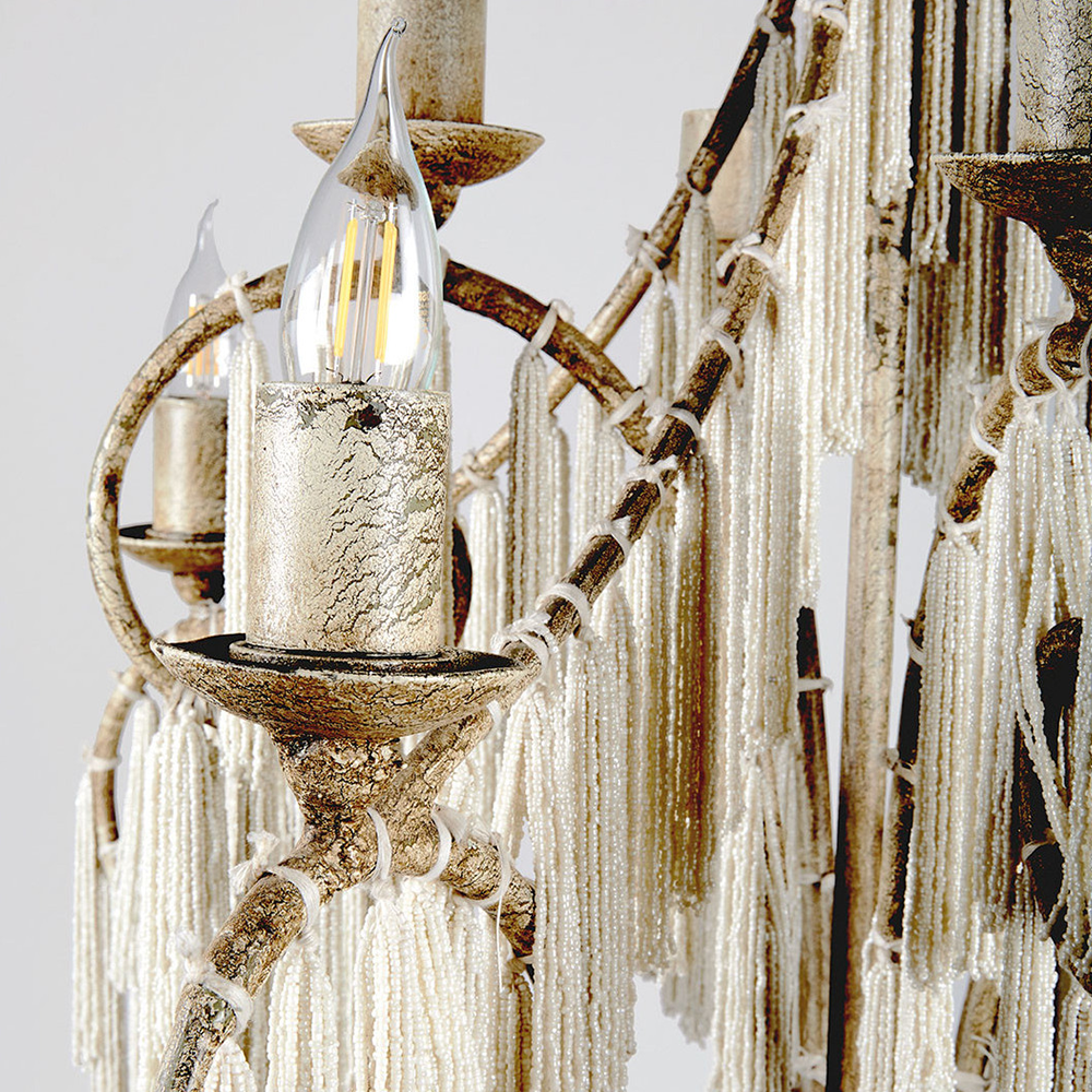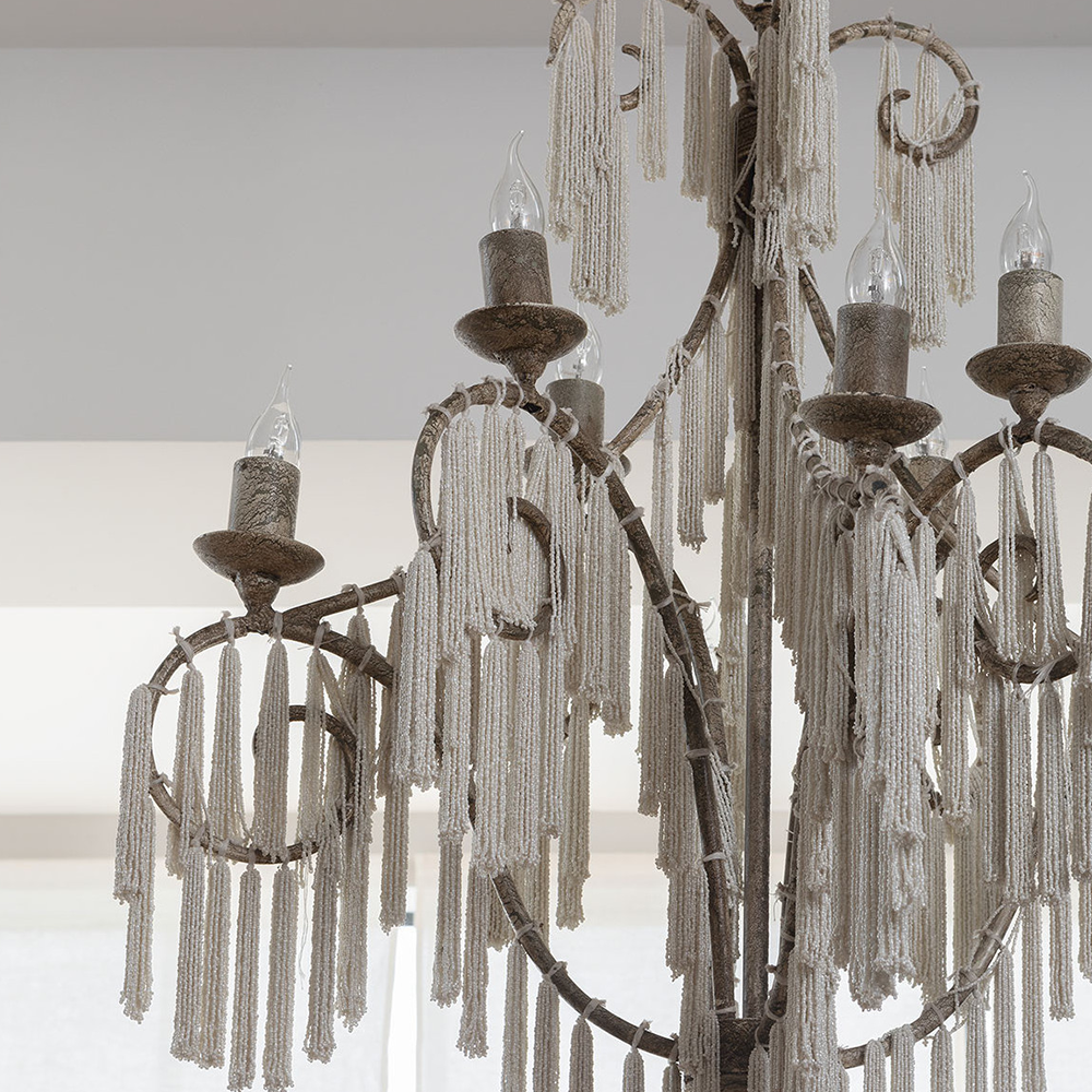 Combines the strength of metal with the delicacy of pearls for a creation that is both bold and refined. Each hanging pearl captures the light and creates a subtle shimmer, transforming your space into a true haven of softness. This pendant light is perfect for bringing a bohemian chic touch to your interior while maintaining a handcrafted and elegant spirit.
