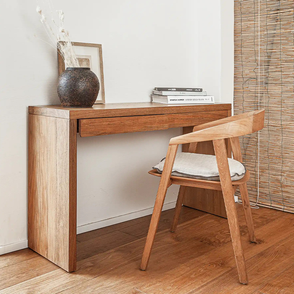 Minimalist Design Solid Natural Teak Wood Desk with Two Drawers
