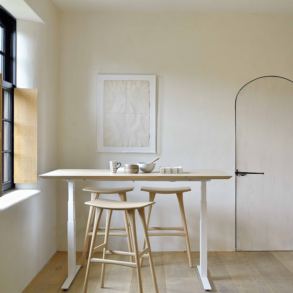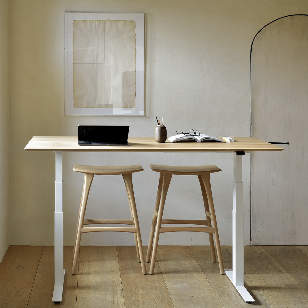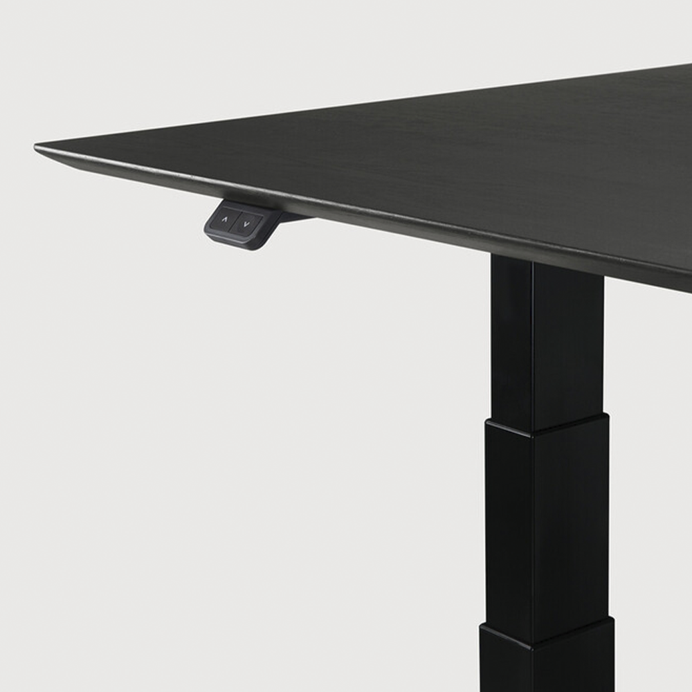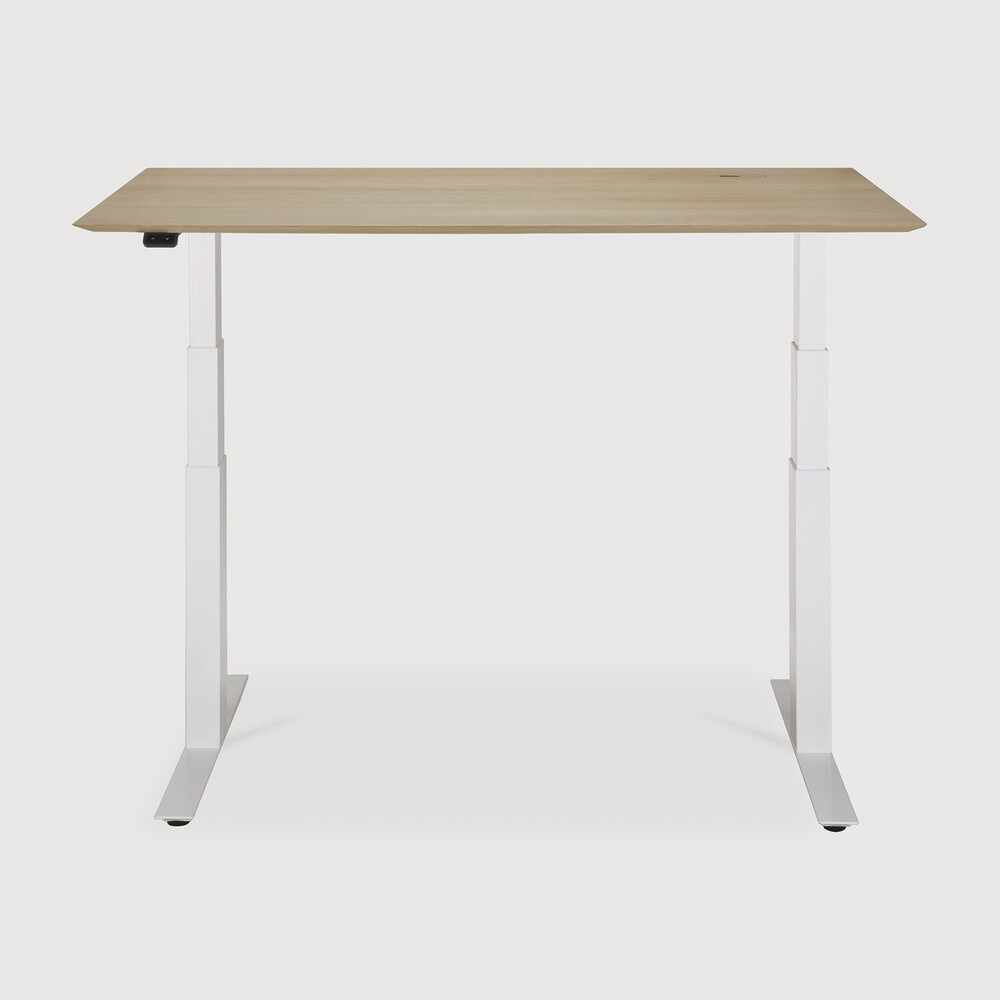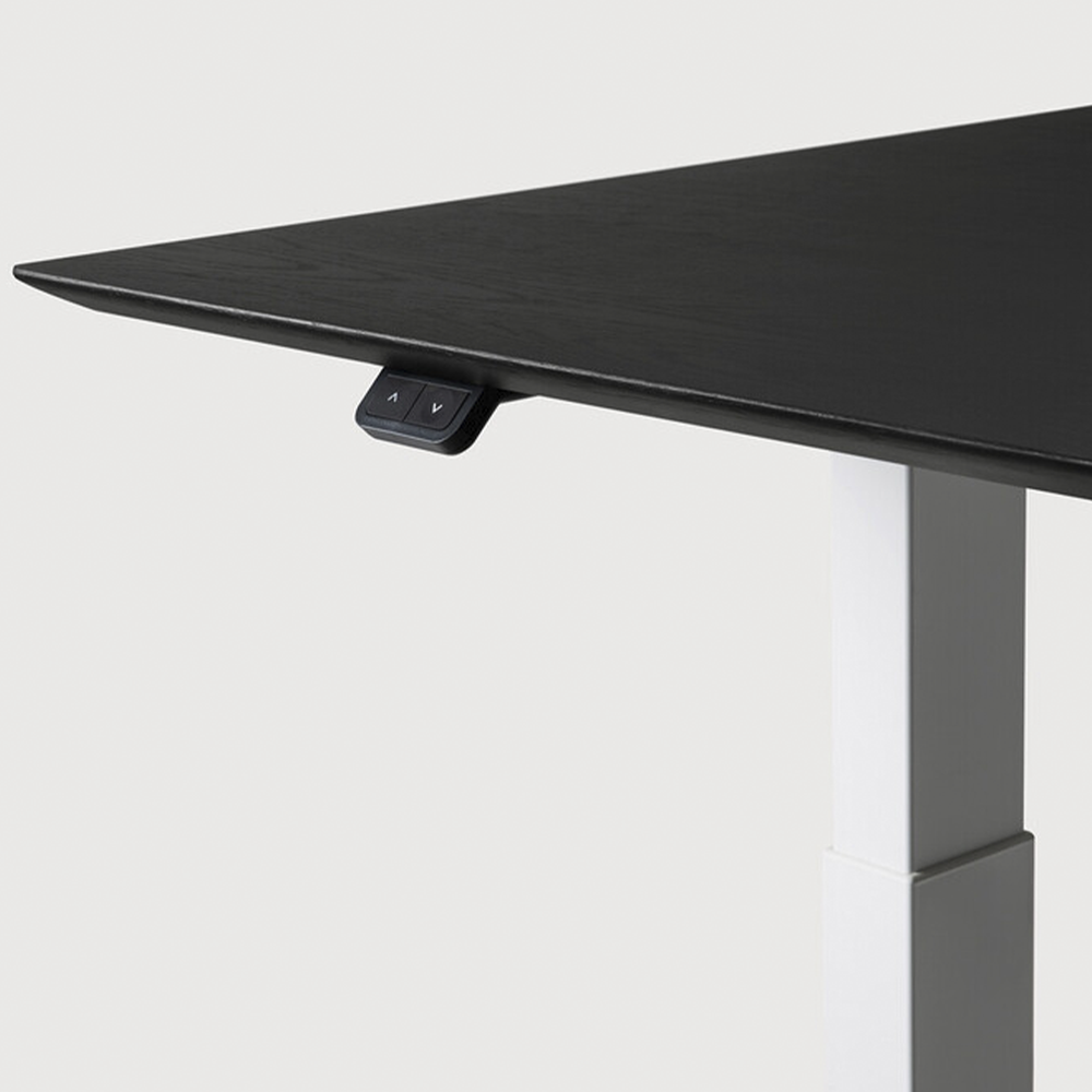 Designed to support your well-being, this desk features a smooth motorized lift so you can shift between sitting and standing with ease. Choose black or white metal legs, paired with a tabletop in natural oak or black-tainted oak—perfectly blending function with style.