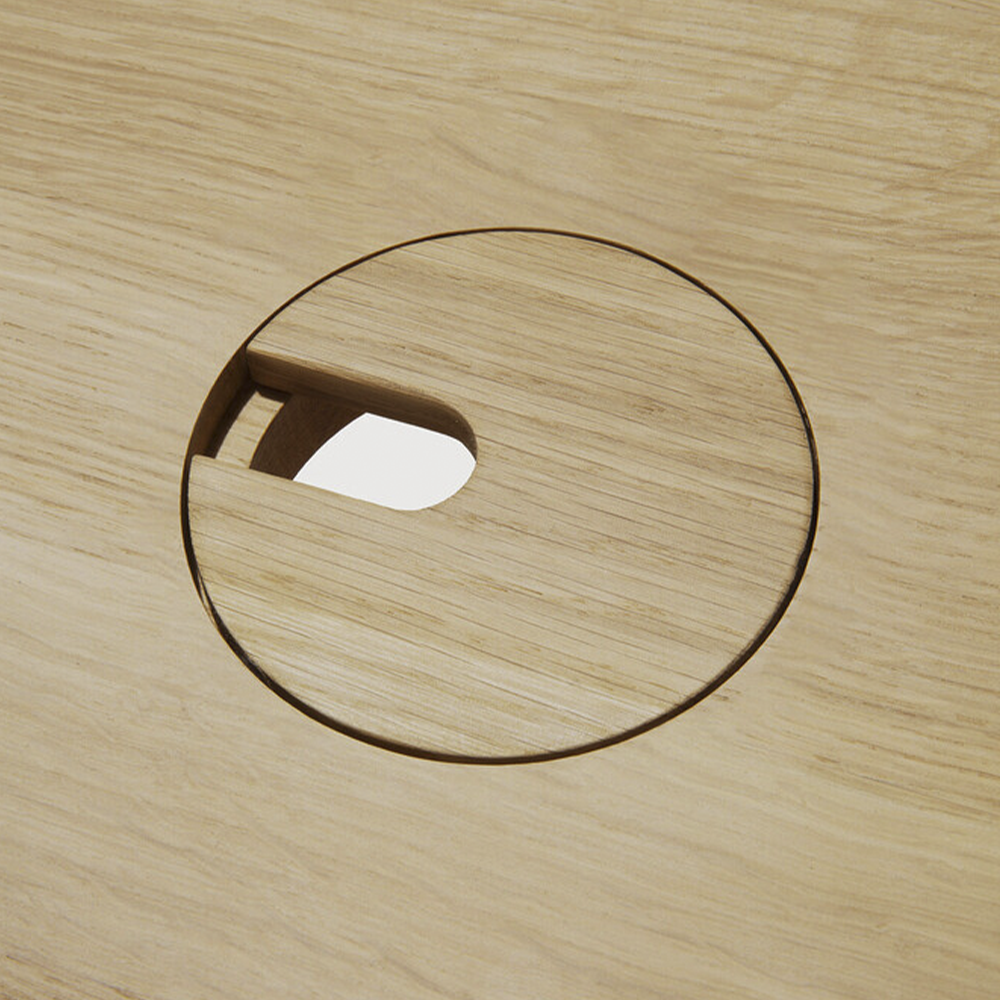 The Solid Oak Quiet Desk blends strength with refined simplicity, offering a clean design that encourages focus and personalization. Crafted from solid oak with a varnish finish, it features integrated cable management options within the desktop. Power Circles and metal cable trays are available separately.