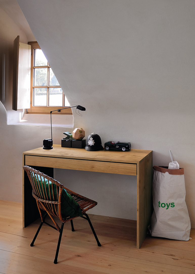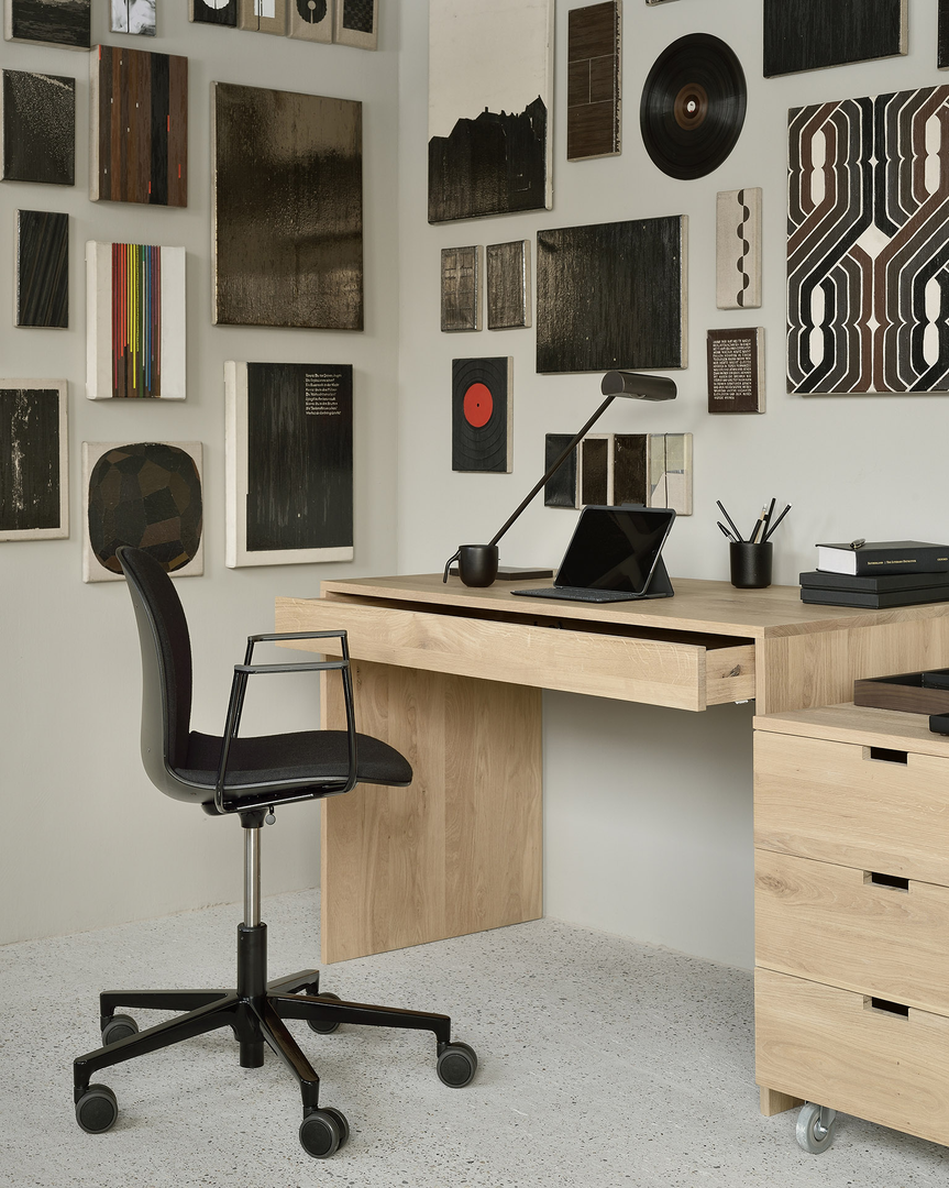 Add some warmth to your home office space with the Wave desk. Made of solid wood, this desk features one push open drawer.