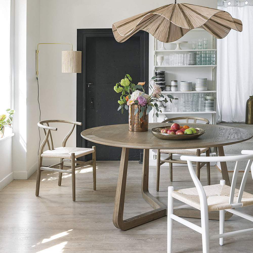 Let yourself be seduced by the airy design and lightness of this pendant light. It will bring a touch of originality and contrast thanks to its natural raffia material, enhanced by a touch of gold and powder pink, luminous and elegant.