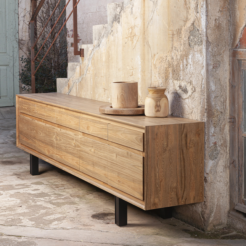 Made from natural sanded teak wood, this vase is characterised by its simplicity and versatility. A container with a pleasantly smooth texture that can be used for a variety of decorative purposes, with dried flowers and plants, or as an aesthetic storage element.