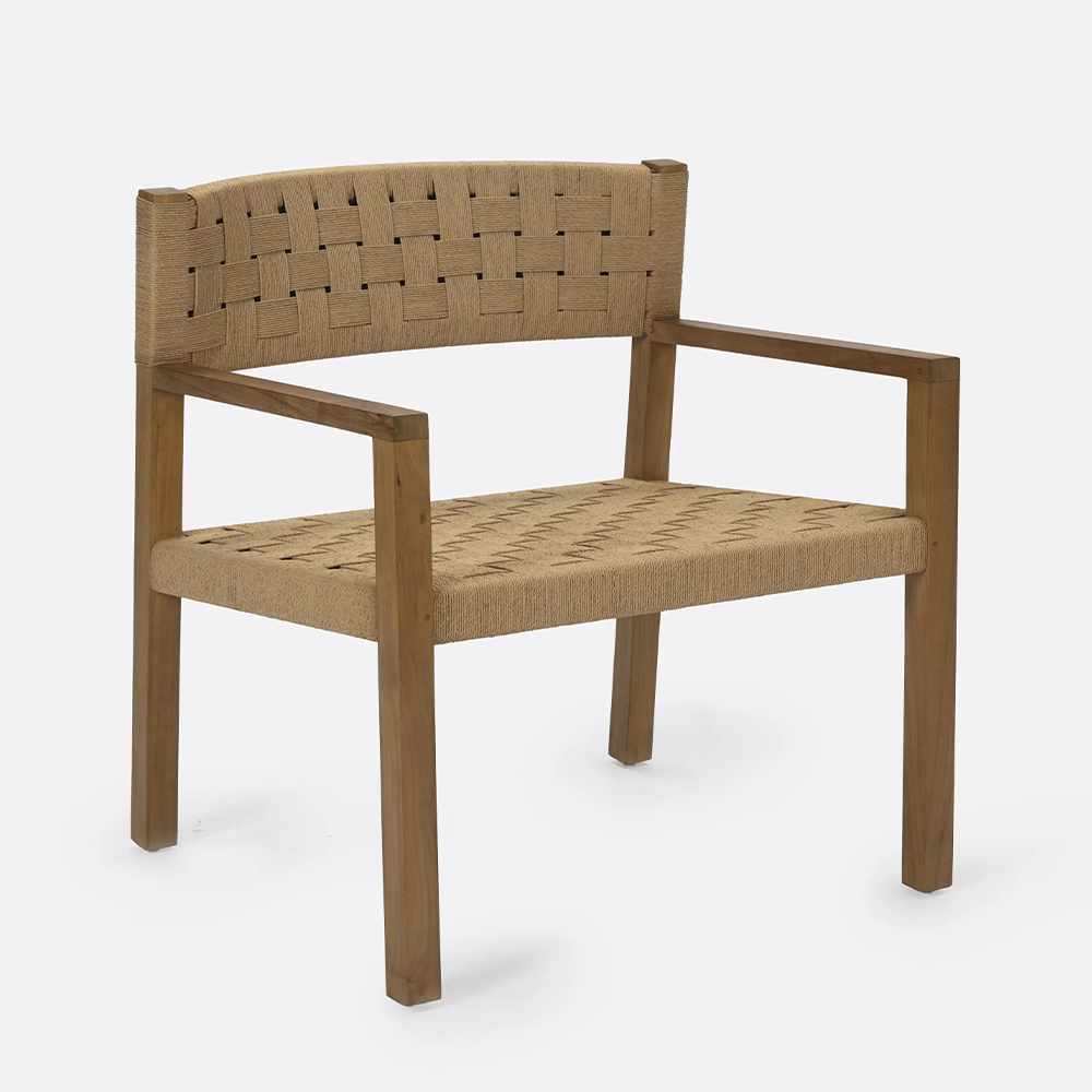 Solid Natural Teak Wood Lounge Chair with Handwoven Chord