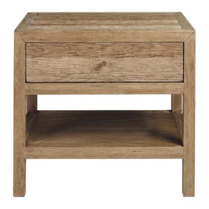 Solid Reclaimed Teak Wood Bedside Table with Natural Rope Drawer