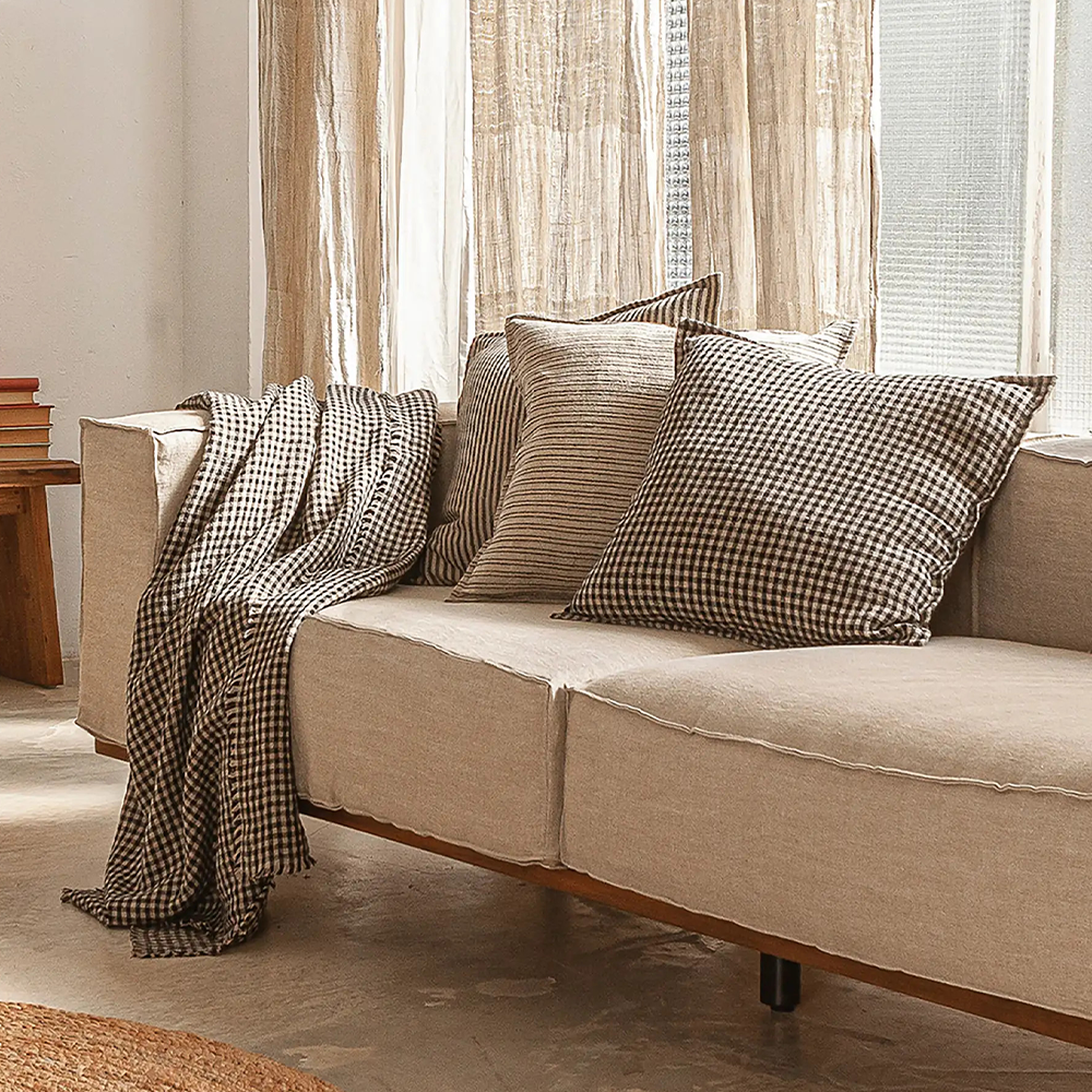Stonewashed Linen Cushion with Check Design