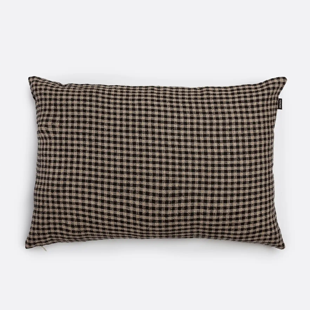 MOGA cushion cover, handmade in 100% natural linen with a woven black squares design. Filling not included. Compatible with 60 x 40 cm fillings.