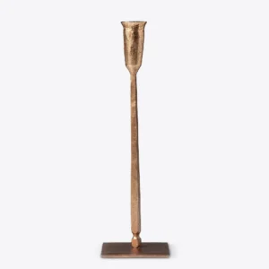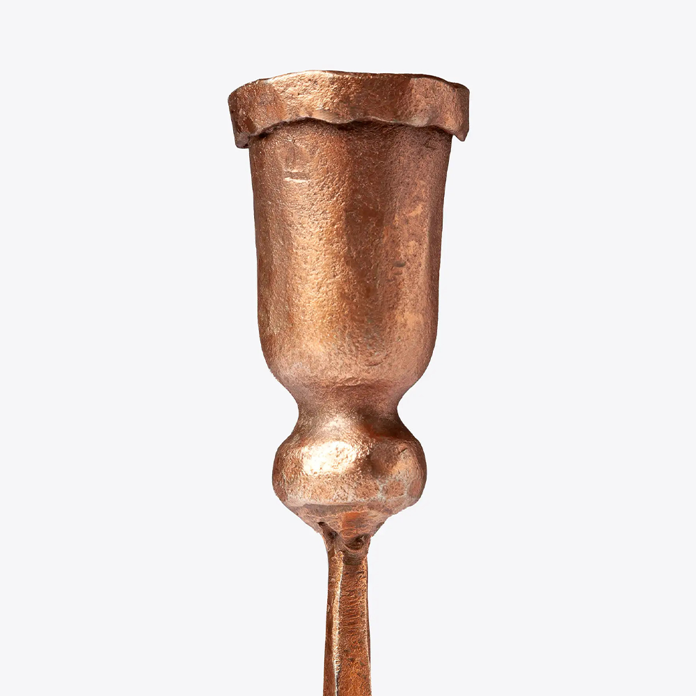 Handmade copper coloured iron candle holder. Each handcrafted piece is unique and slightly different from the others, adding style and exclusivity to any home. Suitable for standard 2 cm diameter candles. Available in four different styles and sizes.