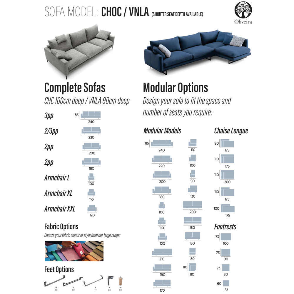 Each item is available in a large selection of fabric types and colours and is also available with different leg options.