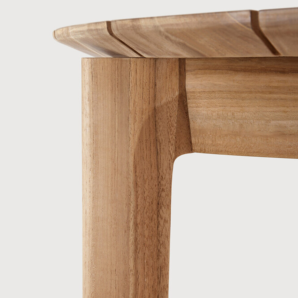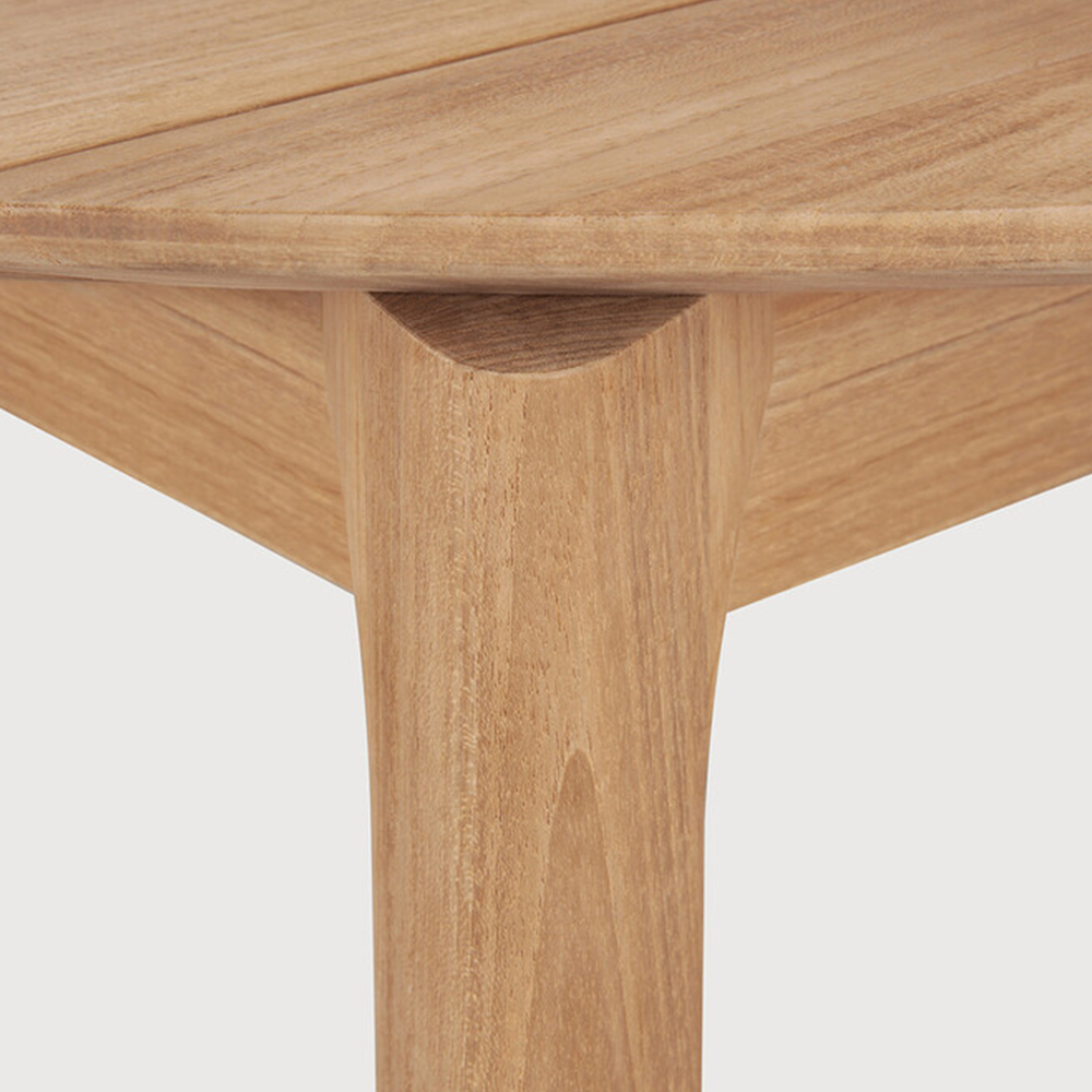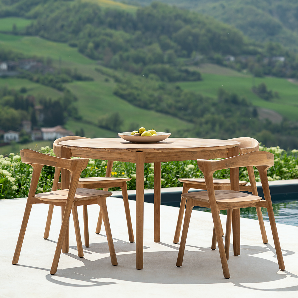 Reminiscent of a goat’s curved horns, the dining table collection combines sculptural elegance and contemporary crafting into a graceful and airy form. Just like its matching chair, this dining table is another signature design. Its airy shape yet rock-solid construction make this piece a timeless and remarkable design to enjoy for all the years to come, while the adapted grooved tabletop in solid teak makes outdoor life a simple pleasure.